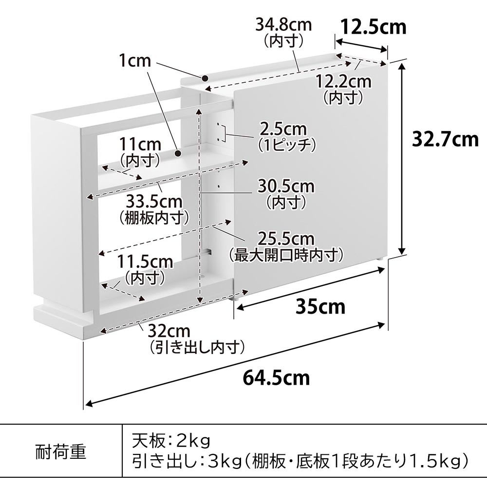 引き出し:3kg(棚板・底板1段あたり1.5kg)