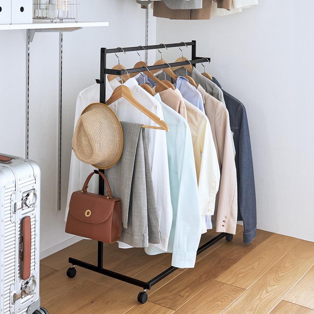 段違いに服を掛けて 上段・下段に服を掛けるからハンガー部分の厚みが減り、収納力が上がる2段式のハンガーラックです。服でいっぱいの収納スペースに余裕ができるので、服選びがしやすくなり身支度もスムーズに。クローゼットに掛けた服の下にこちらのラックを置くだけで収納量が上がり、デッドスペースを収納スペースに変えてくれます。押入れにも収まるサイズなので、押入れを新たにクローゼットとして活用!お部屋の空間を無駄なく使える優れものです。また、縦・横どちらの向きでもスペースに合わせて設置可能。キャスター付きで移動や掃除もラクラクです。サイドの4連フックには、帽子やミニバッグなどのファッション小物を収納。ラックの左右どちらにも取り付け可能です。 ![]() ![]() ![]() ![]() ![]() ![]() ![]() ![]() ![]() ![]() ![]() ![]() ![]() ![]() ![]() ![]() |