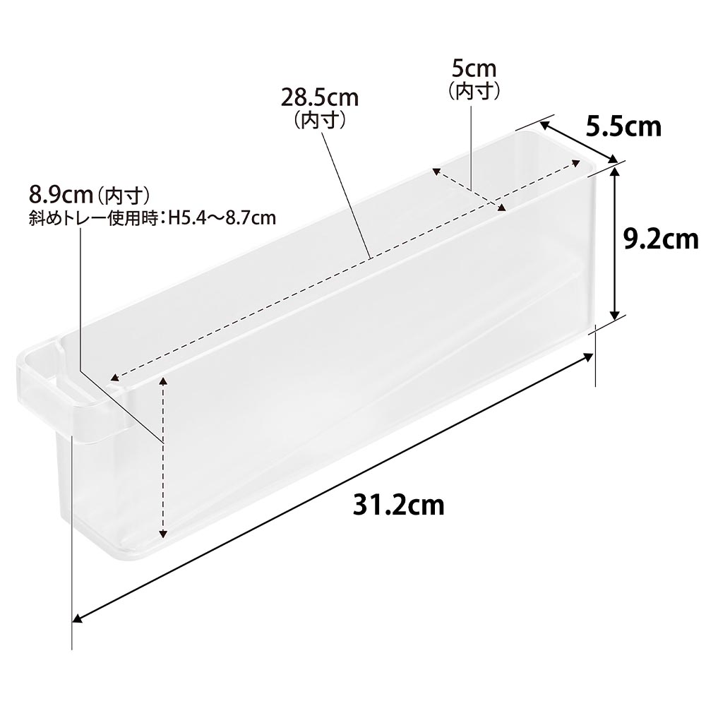W5×D28.5×H8.9cm(斜めトレー使用時:H5.4~8.7cm)