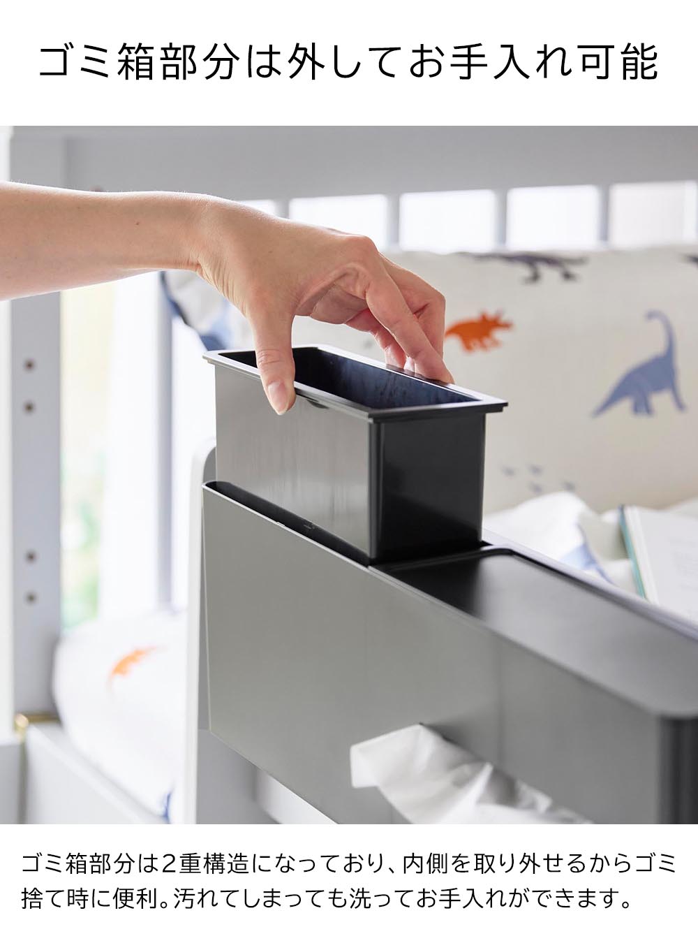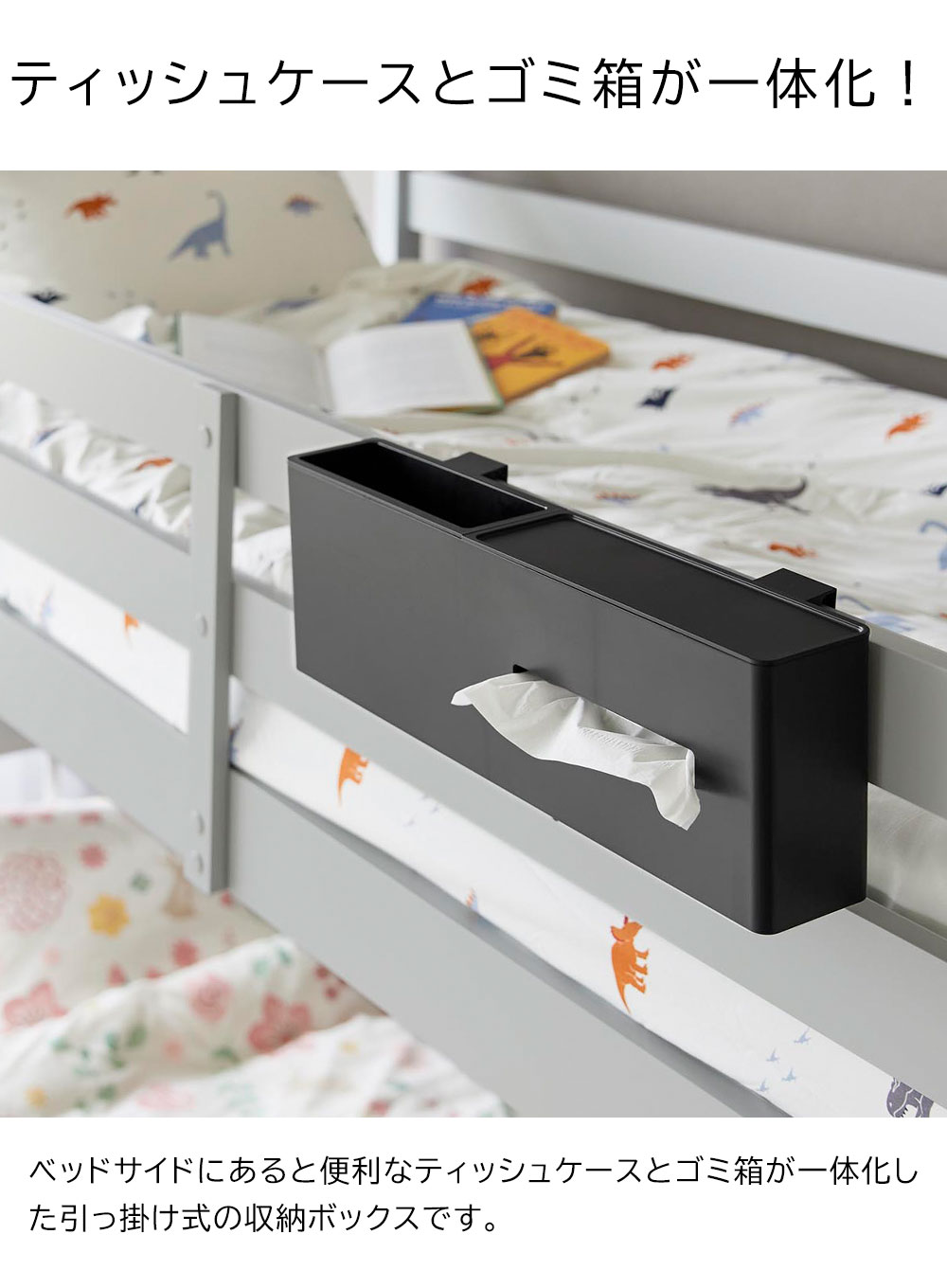 ティッシュケースとゴミ箱を ティッシュケースとゴミ箱が一体になった引っ掛け式収納ボックスです。 ベッドフレームに引っ掛けて取り付けられるので、サイドテーブルが置けない限られたスペースにも、ティッシュとゴミ箱がスマートにセットできます。高さのある2段ベッドやロフトベッドにもおすすめ。 ティッシュケース部分は蓋がトレーになっており、メガネなどの一時置きにもぴったりです。 ゴミ箱部分は着脱式のため、ゴミ捨てもラクにできます。また、汚れても洗ってお手入れできます。 ゴミ箱以外にもリモコンやスマホの収納としても便利です。 フックを使わずに置き型として使用も可能。テーブルやキャビネット、カウンター上など、様々な場所でお使いいただけます。 ![]() ![]() ![]() ![]() ![]() ![]() ![]() ![]() ![]() ![]() ![]() ![]() ![]() ![]() ![]() |