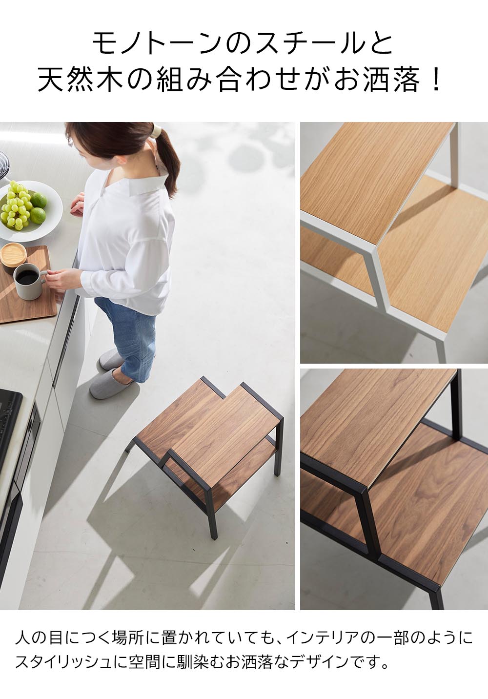 インテリアに馴染むデザイン 高い場所にある物の出し入れの際に、1台あると便利な2段の踏み台です。 足を乗せられるスペースが広く、安定感があるので安心して使用できます。 天然木の踏面とモノトーンのスチールの組み合わせがスタイリッシュで、室内の見える場所に置かれていても、インテリアの一部のようにおしゃれに空間に馴染みます。 踏み台としての使用以外にも、例えばキッチンで、調理の合間にちょっと腰掛ける場所にしたり、リビングでは、サイドテーブルや観葉植物の置き台として使用するのも便利です。 組み立て不要で、届いたらすぐに使用できます。 ![]() ![]() ![]() ![]() ![]() ![]() ![]() ![]() ![]() ![]() ![]() ![]() ![]() |