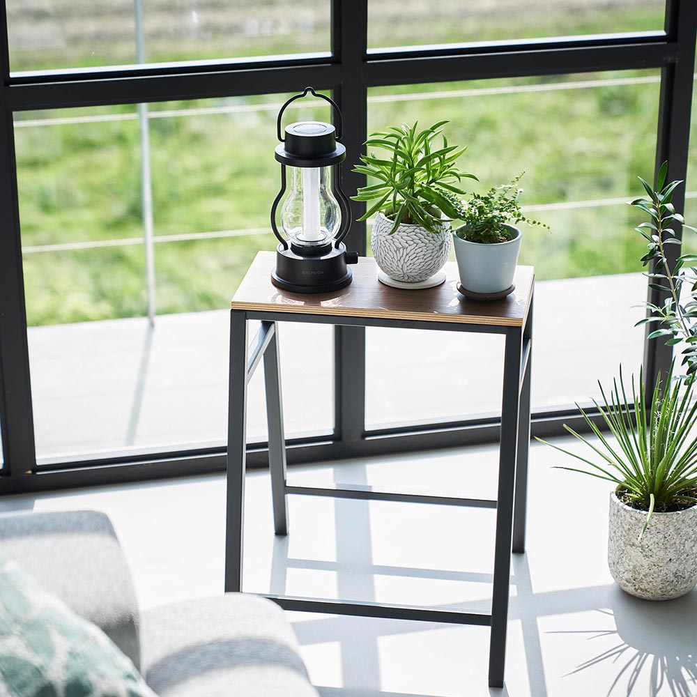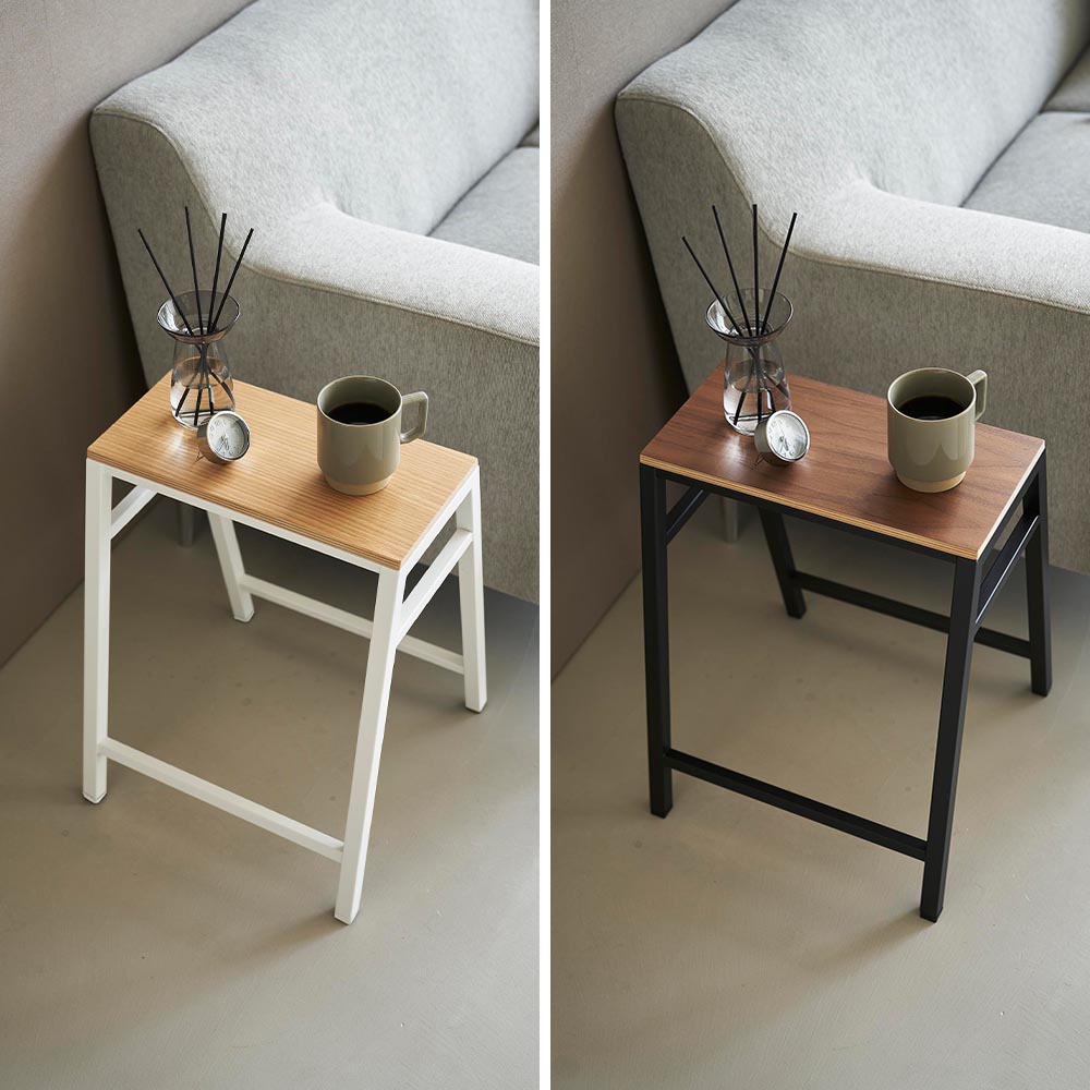 スチールと木の組み合わせがお洒落で、空間に馴染むシンプルなデザインなので、リビングや寝室でのサイドテーブルとして使用したり、観葉植物を置く台として使うのも素敵です。
