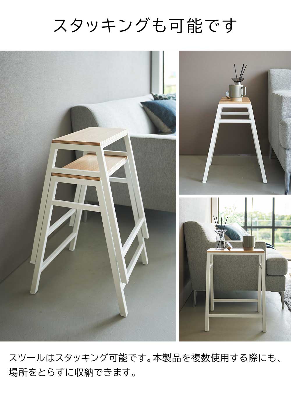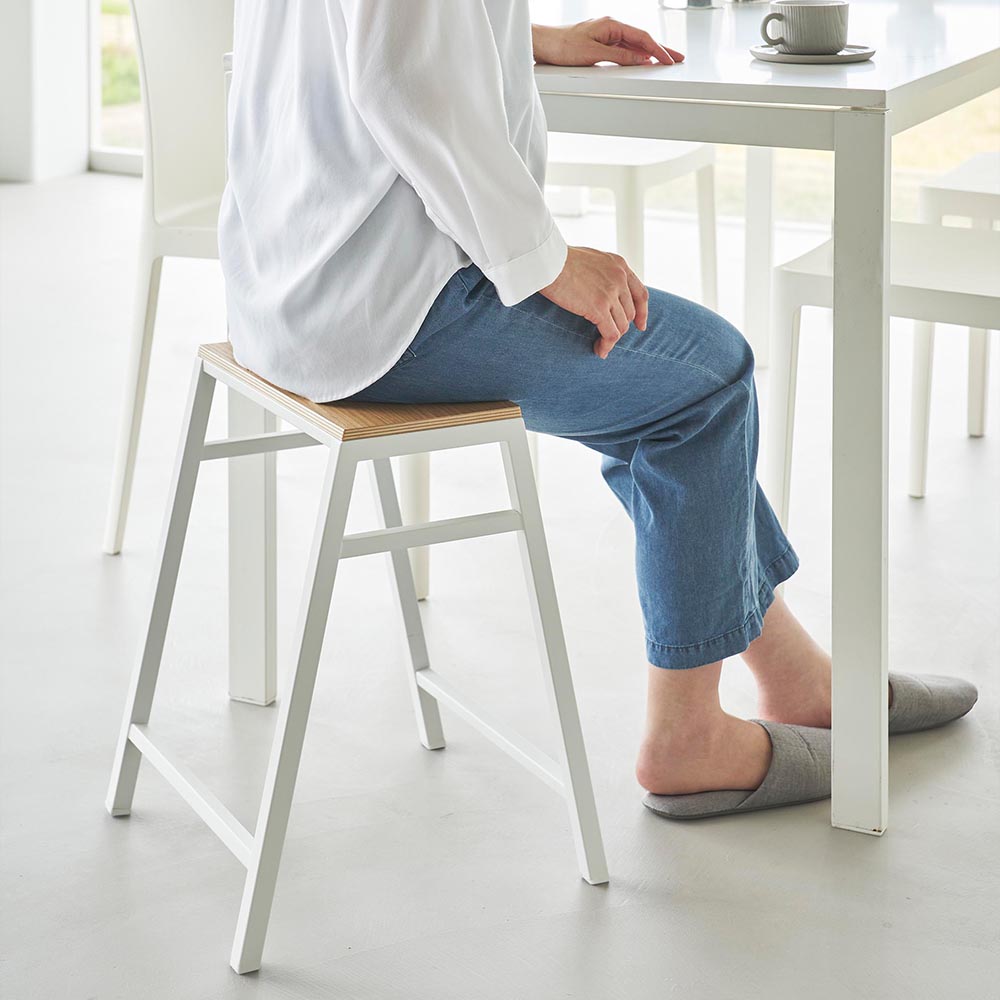 「キッチンで調理の合間にちょっと座って小休憩」「玄関で靴の脱ぎ履きの際に腰掛ける」「多数の来客がある際に簡易のイスとして活用」など、様々なシーンで使えるスタイリッシュなスツールです。