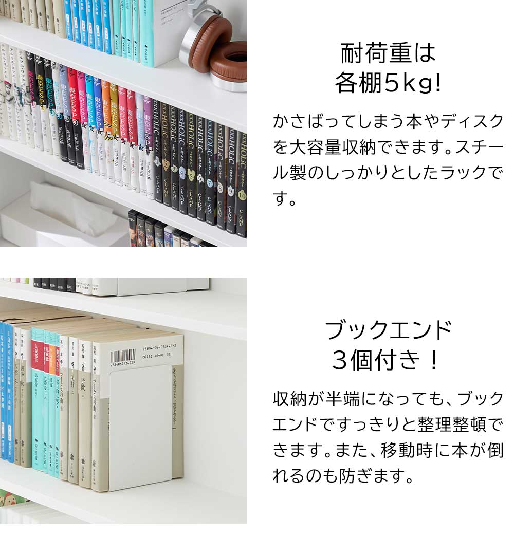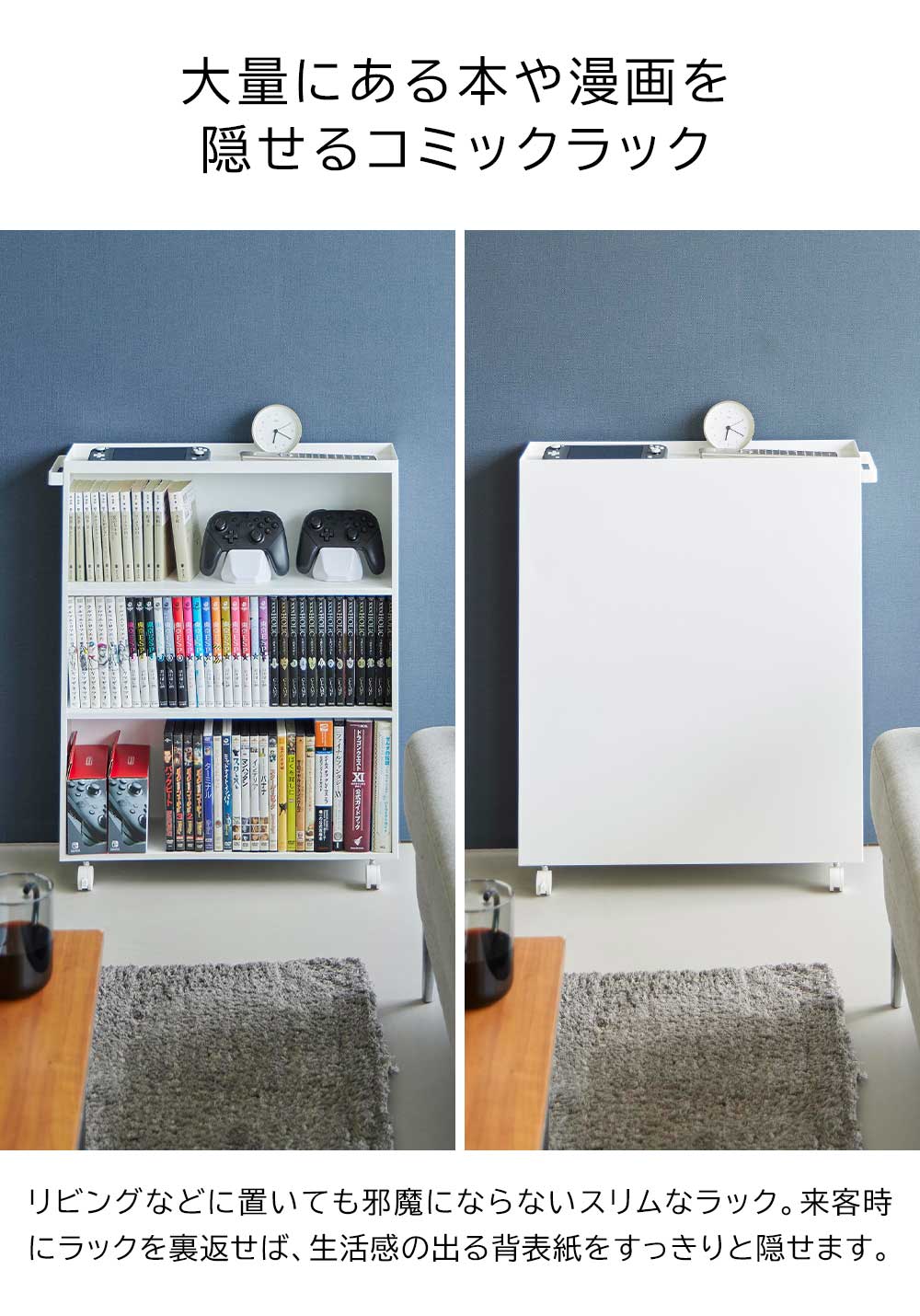 大量の文庫本や漫画本 かさばってしまう本やディスクを、大容量収納できるコミックラック。 リビングなどに置いても邪魔にならないスリムなラックです。 来客時にラックを裏返せば、生活感の出る背表紙をすっきりと隠せます。 漫画の高さにあったジャストサイズ設計で、上段と中段は文庫本や単行本を、 下段は高さのあるA5判サイズの本を収納できます。 スリム設計のラックなので、押し入れやクローゼットの隙間にもぴったり収まり、 ハンドルとキャスターでスムーズに移動。 ハンドルは、左右どちらの側面にも取り付け可能です。 ブックエンドが3個付属されており、すっきりと整理整頓! 移動時に本が倒れるのも防ぎます。 ![]() ![]() ![]() ![]() ![]() ![]() ![]() ![]() ![]() ![]() ![]() ![]() |