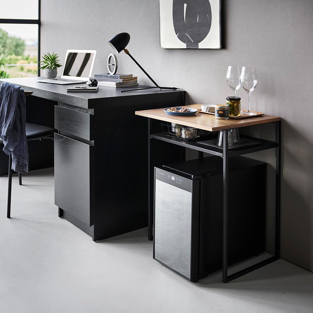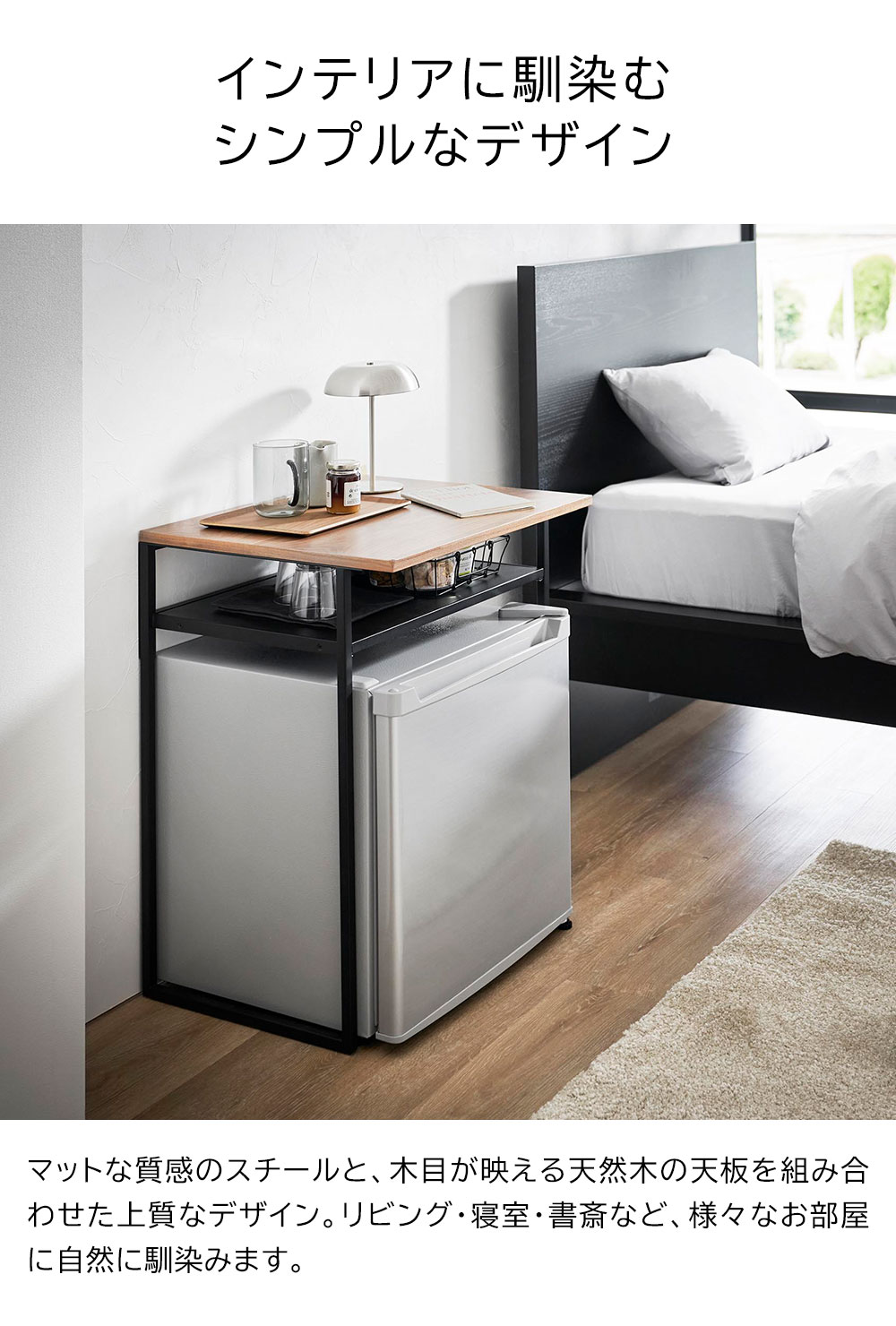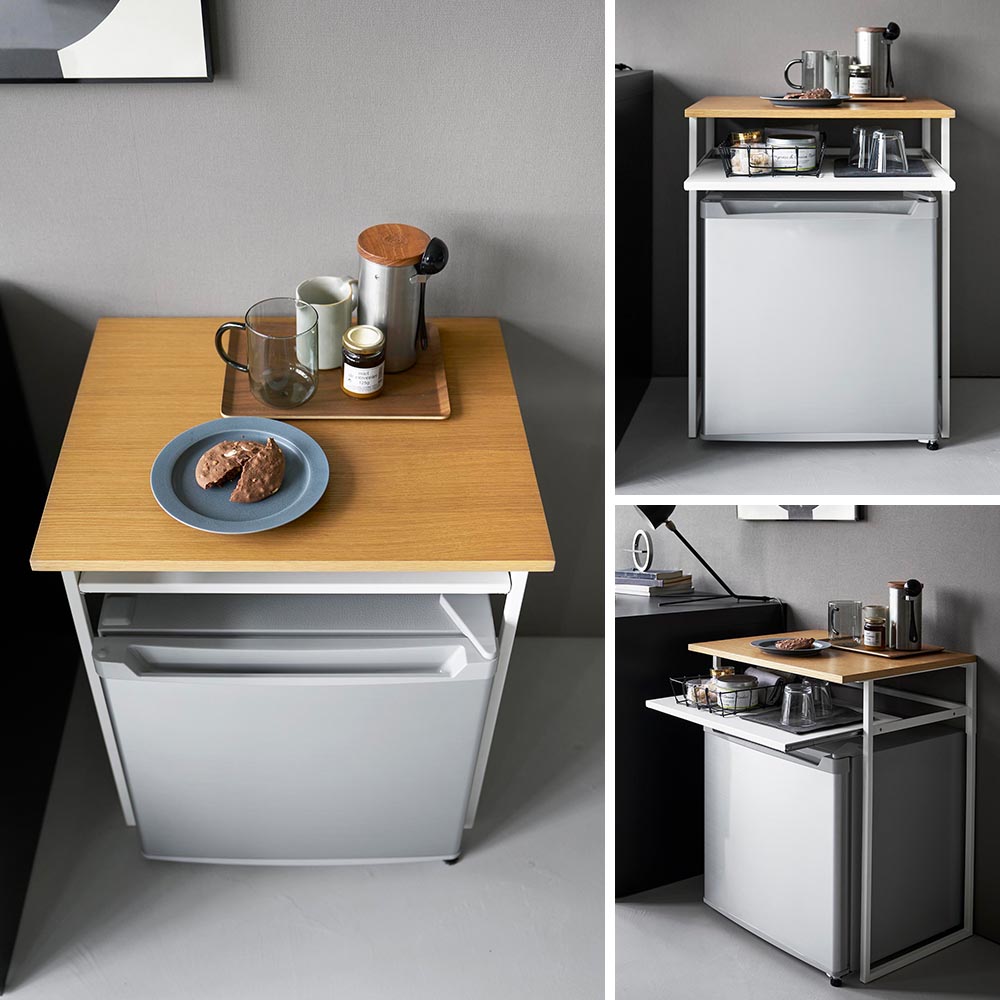 デッドスペースになりがちな 小型冷蔵庫上(45L用)の空きスペースを有効活用できるオープンラックです。小型冷蔵庫や小型ワインセラー上に新たな収納場所をプラスし、空間を無駄なく活用できます。天然木の天板は、サイドテーブルとして使えて便利。グラスや小物を置くことができる引き出しも付いています。マットな質感のスチールと天然木を組み合わせた上質なデザイン。書斎・寝室・リビングなど、様々なお部屋に自然に馴染みます。 ![]() ![]() ![]() ![]() ![]() ![]() ![]() ![]() ![]() ![]() ![]() ![]() ![]() |
