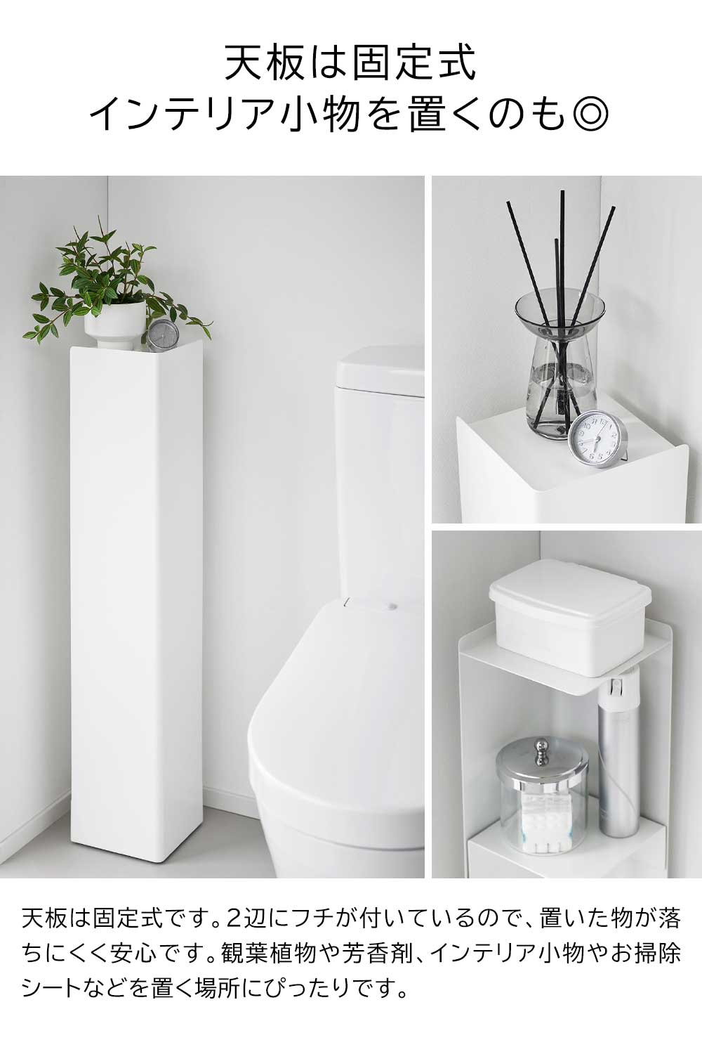 トイレ用品を隠して収納! トイレ用品を隠しながら収納できる、とてもスリムなトイレラックです。限られた空間の中でも邪魔にならずにスマートに設置でき、シンプルな外観で生活感を一掃します。 トイレ用品を使いたい時だけクルッと回して中の物を取り出します。縦長のラックなので長いトイレブラシも収納できます。 ラック内の棚は位置を自由に変えられるマグネットタイプ。トイレットペーパーや消臭スプレー、サニタリー用品など、収納したい物の大きさに合わせて棚の高さを決められます。 ラックの下には滑らかに動くキャスターが付いているので、掃除の際の移動もラクラク。外からキャスターが見えないデザインで、スタイリッシュに空間に馴染みます。 ![]() ![]() ![]() ![]() ![]() ![]() ![]() ![]() ![]() ![]() ![]() ![]() ![]() |