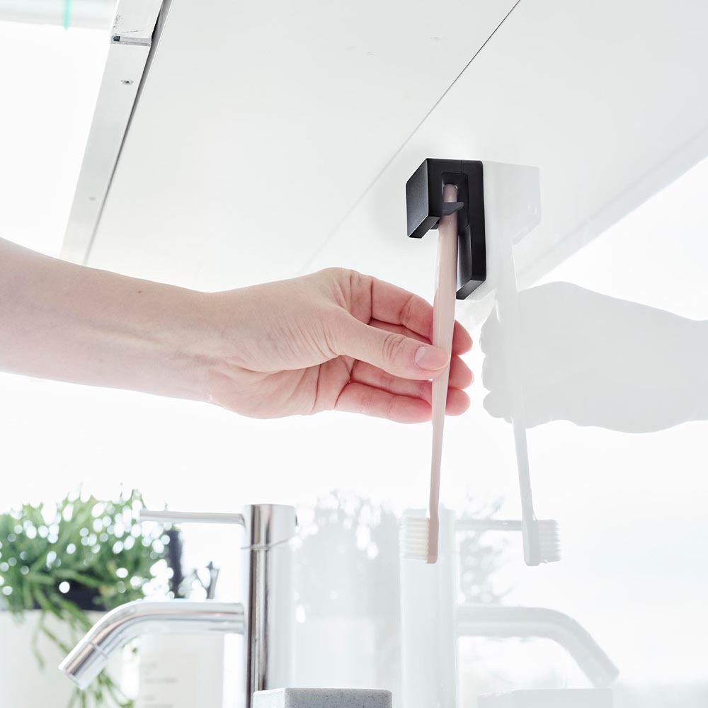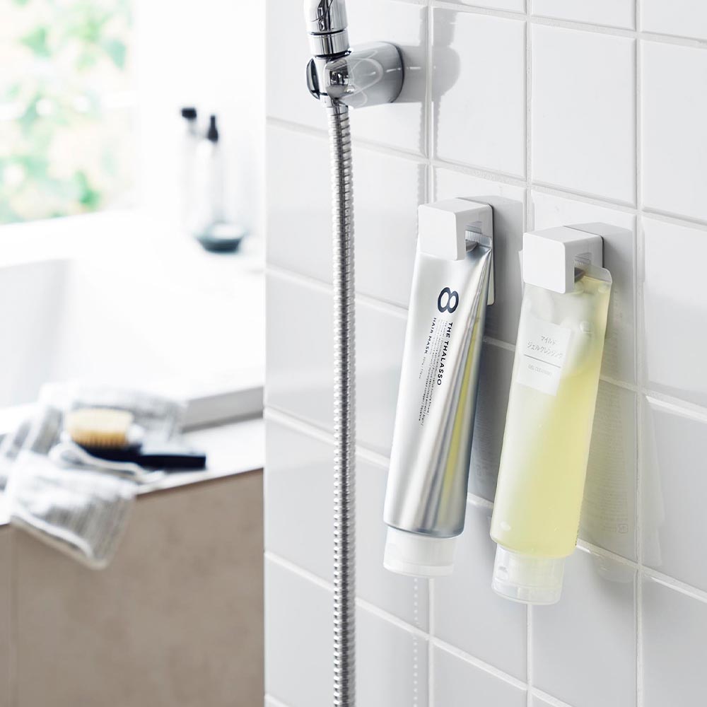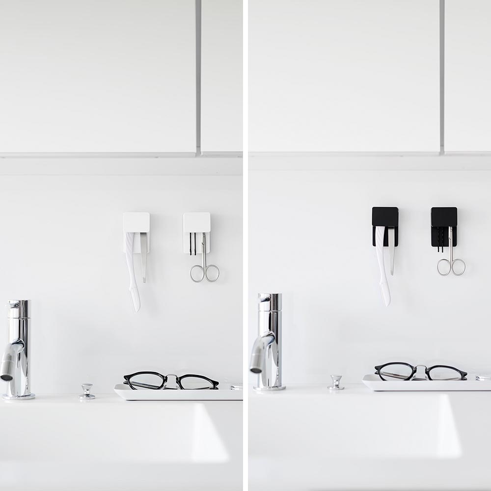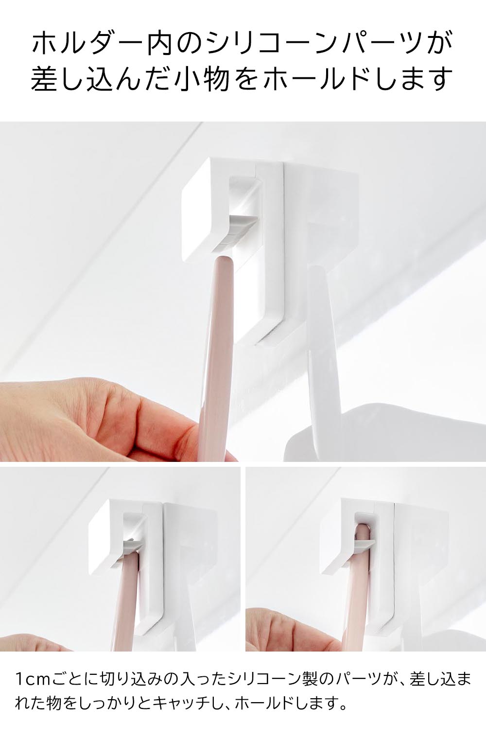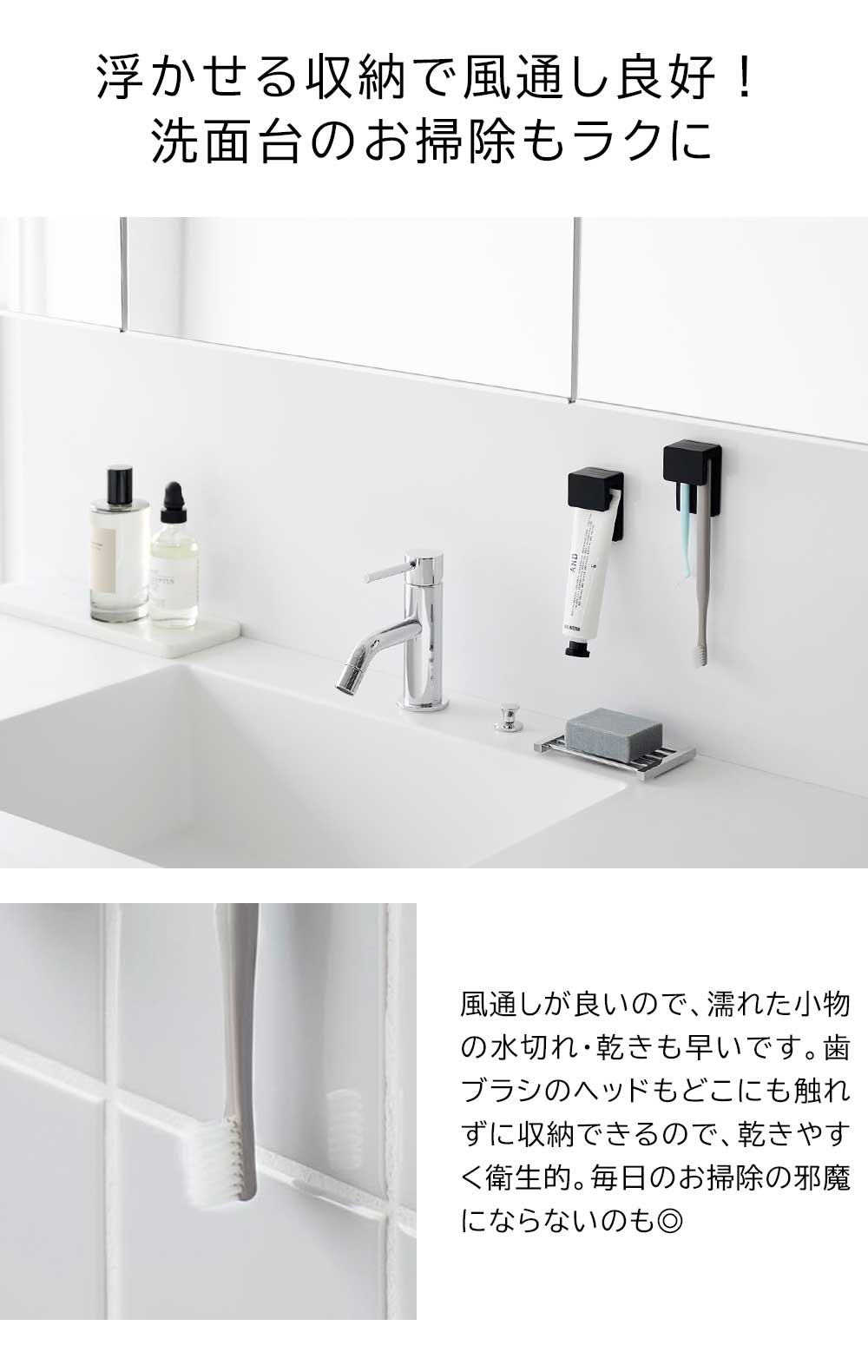 洗面小物を浮かせて収納! 歯ブラシや歯磨き粉、洗顔フォームなどの小物を浮かせて収納できる、2個セットのホルダーです。 フィルムフックで洗面パネルやお風呂のタイルなどのお好みの位置に簡単に設置できます。 収納したい物を下からスッと差し込むだけで、ホルダー内部にある切り込みの入ったシリコーンパーツがしっかりとホールドします。 浮かせて収納できるので風通しも良好!濡れた歯ブラシのヘッドも、下向きにしてどこにも触れることなく収納できるので、乾きやすく衛生的です。 厚みが2~8.5mmの物であれば収納できるので、歯間ブラシやピンセットのような小さな物も収納可能です。 浮かせているので場所を取らず、周辺のお掃除の際にも邪魔にならず快適です。 ![]() ![]() ![]() ![]() ![]() ![]() ![]() ![]() ![]() ![]() ![]() ![]() ![]() |