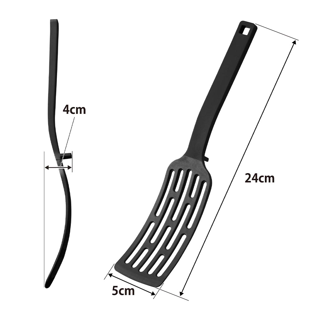 滑りにくく熱に強いターナーです。ヘラ部分が一般的なターナーよりも少し長めになっており、魚や肉などの長さのある食材も綺麗にすくい、返すことができます。