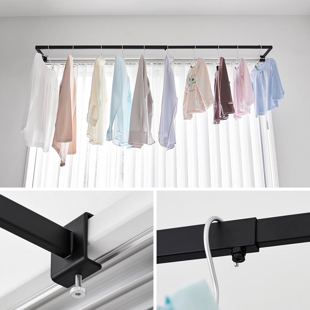 鴨居や窓枠に設置するだけで 鴨居やスライド扉の枠・窓枠などに設置するだけで室内物干しスペースができる、便利な伸縮式ハンガーです。 奥行きがあるので扉やカーテンを閉じた状態でも洗濯物が干せて、風通しも良くなることで乾きムラ防止になるのも嬉しいポイントです。ホルダー上部のピン(針)と下部の調節ネジで鴨居やスライド扉の枠・窓枠を挟み込み、付属の六角レンチで締めてしっかりと固定。ハンガーの幅は伸縮し、設置する場所に合わせて使えるので便利です。 ![]() ![]() ![]() ![]() ![]() ![]() ![]() ![]() ![]() ![]() ![]() |