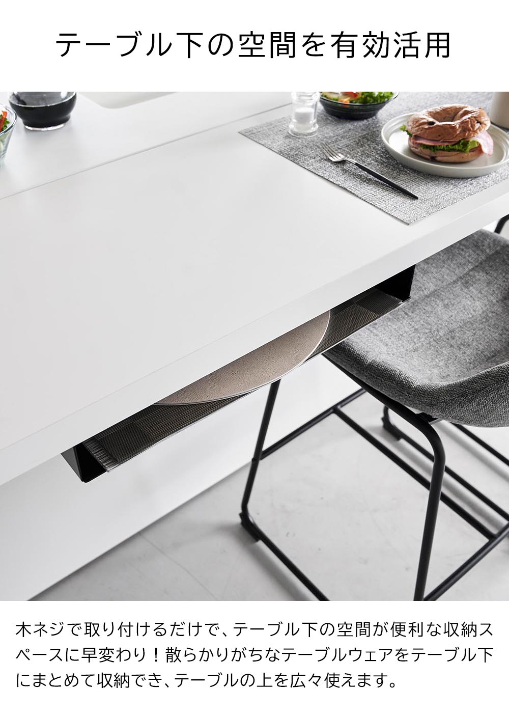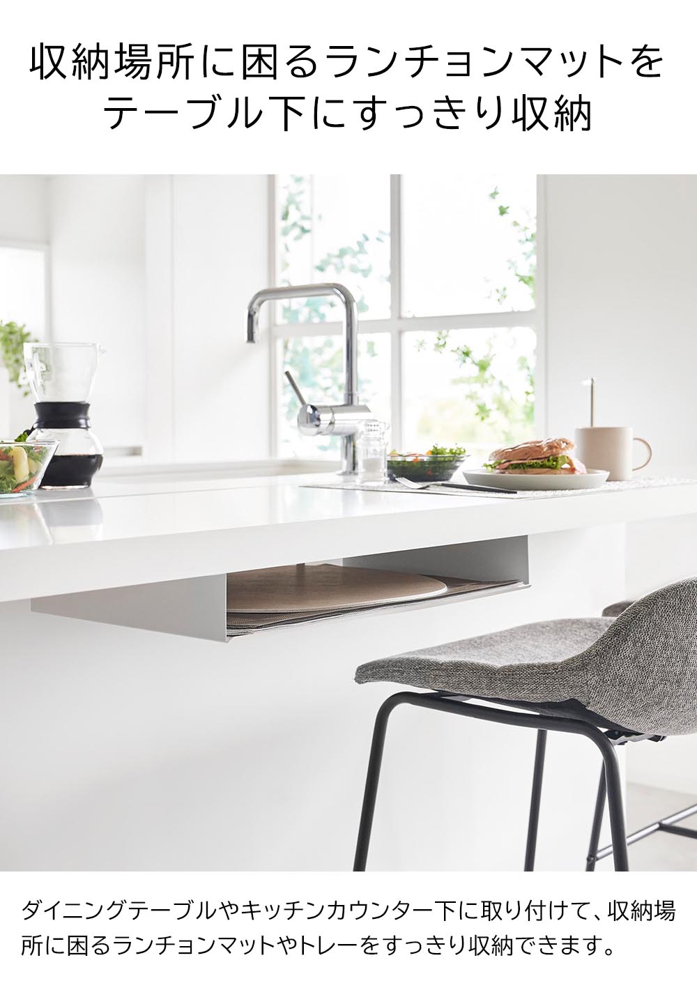 テーブル下を有効活用! ダイニングテーブルやキッチンカウンター下に取り付けて、収納場所に困るランチョンマットを収納できるラック。木ネジで取り付けるだけで、テーブル下のちょっとした空間が便利な収納スペースに早変わりします。ランチョンマット以外にも、トレーやカトラリーを収納することができ、テーブルの上を広々使えます。使う場所のそばに収納しておくと、使いたい時にサッと使えるので便利です。前面・背面ともに収納した物が落ちにくい構造になっています。 ![]() ![]() ![]() ![]() ![]() ![]() ![]() ![]() ![]() ![]() ![]() ![]() |