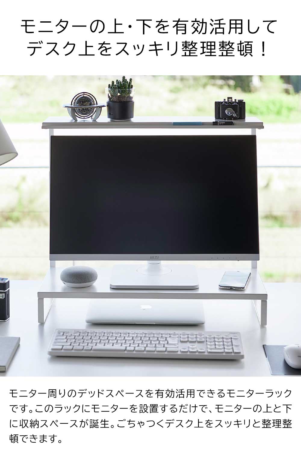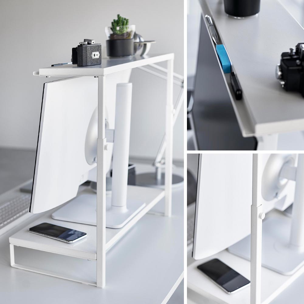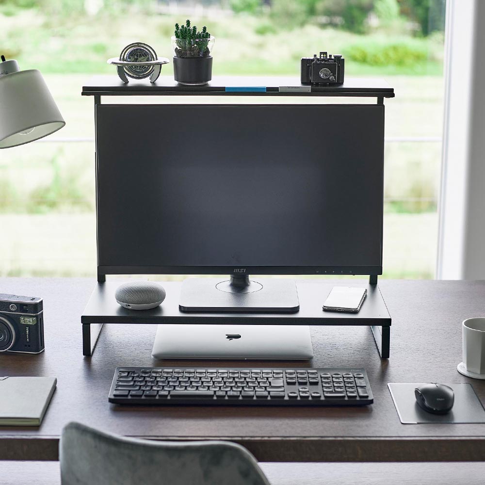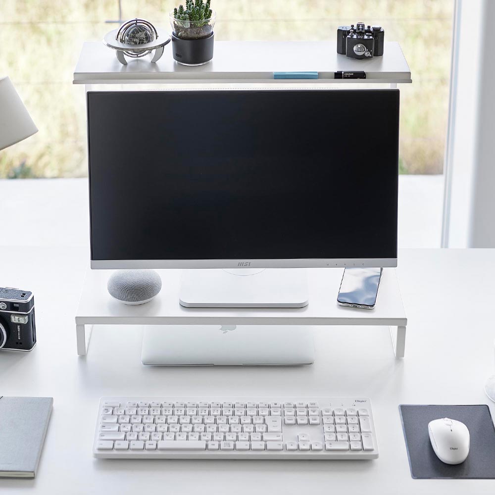 モニターの上下を有効活用し モニターの上や下に新たな収納スペースをプラスできるモニターラックです。上段のラックは小物置きに便利。手前の溝には、ペン・USB・付箋をピッタリと収納できます。下段のラック下にキーボードなどをしまえば、デスク上がスッキリとし広々使えます。ラックのサイドフレームにある調節ネジで、モニターに合わせた高さに調節が可能。どんなインテリアにも馴染むシンプルでスタイリッシュなデザインです。 ![]() ![]() ![]() ![]() ![]() ![]() ![]() ![]() ![]() ![]() ![]() ![]() |