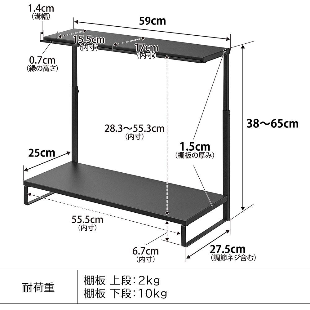 棚板:上段2kg、下段10kg
