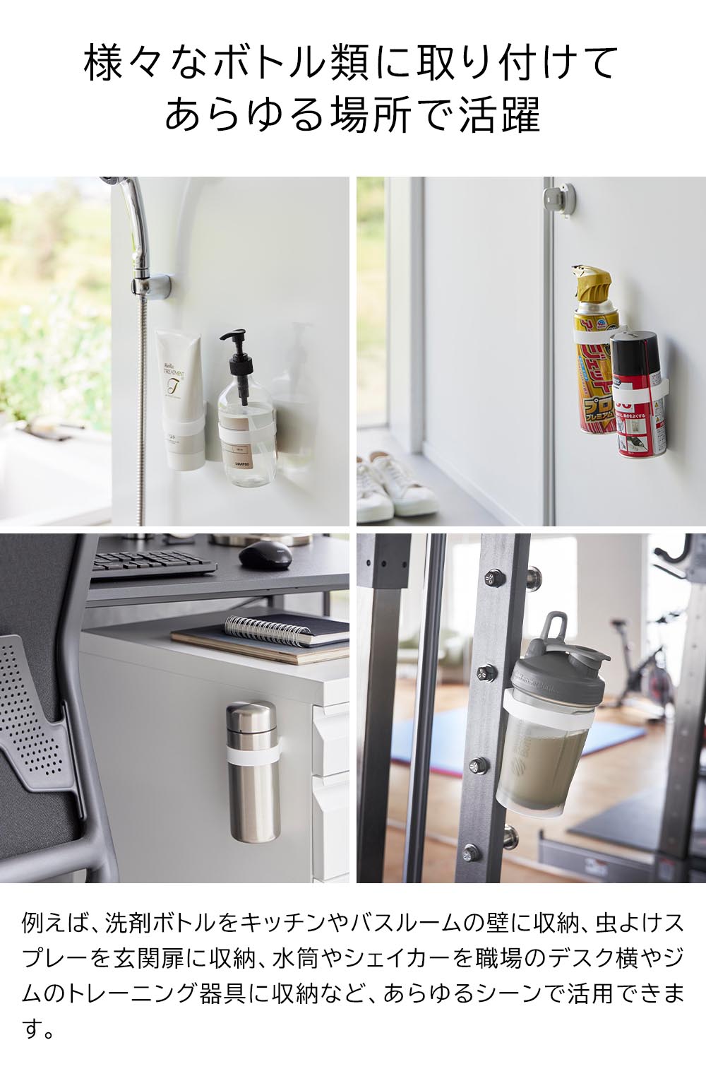 直径6~8cmのボトル類やスプレー類に取り付けられる為、用途は様々。あらゆるシーンで活用できます。