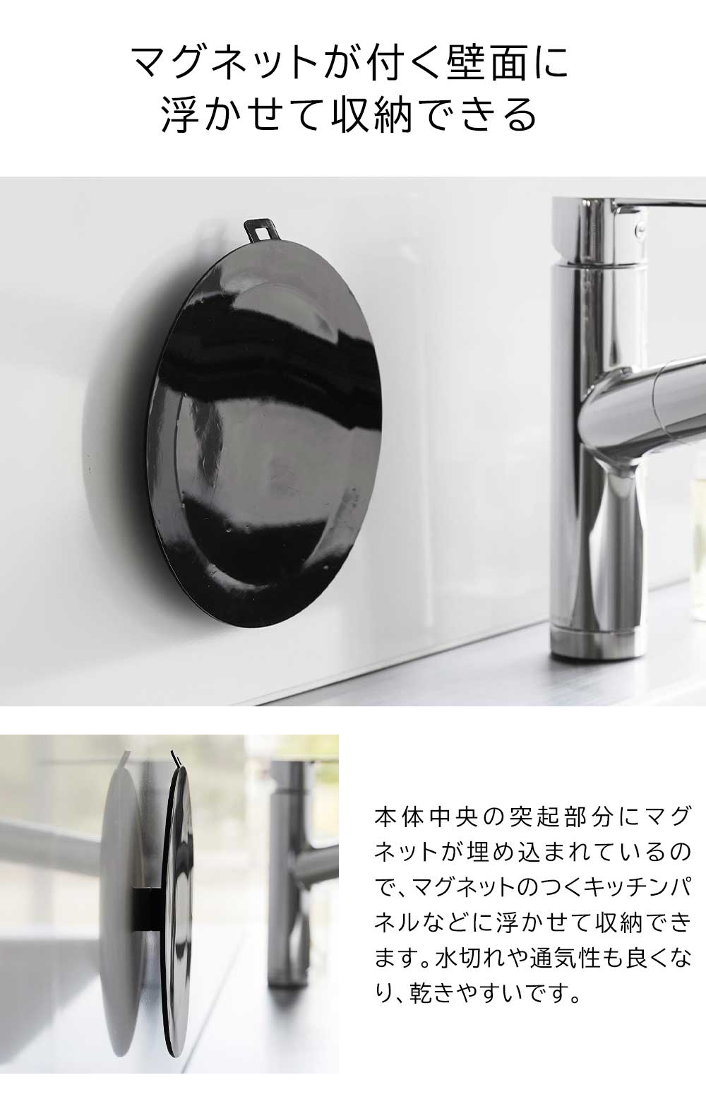 排水口に蓋をして 排水口に蓋をしてシンクで浸け置き洗いができるシリコーン製の止水キャップ。 直径15cm以内の排水口に対応しています。 本体中央にマグネットが埋め込まれており、シンク周りのマグネットがつく壁面に貼り付けて収納できるので収納場所にも困りません。 また、浮かせているので水切れや通気性が良くなり、乾きやすいです。 ![]() ![]() ![]() ![]() ![]() ![]() ![]() ![]() ![]() ![]() |