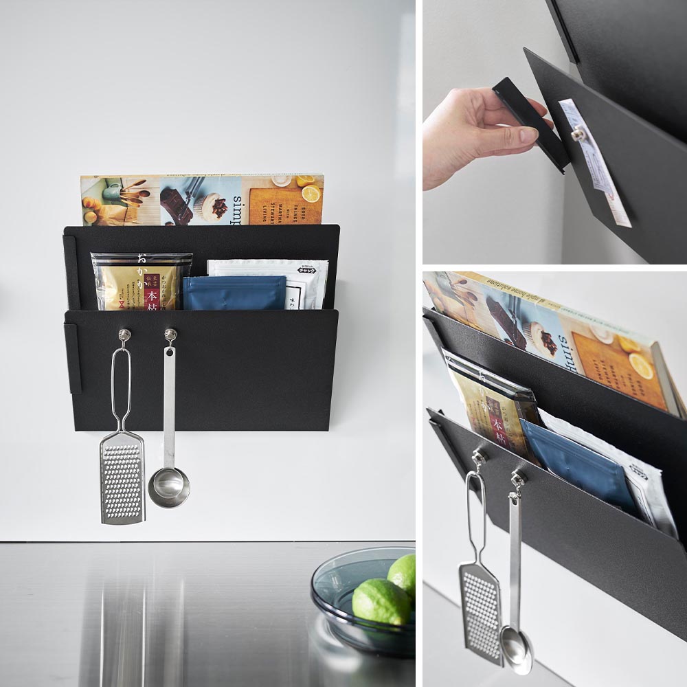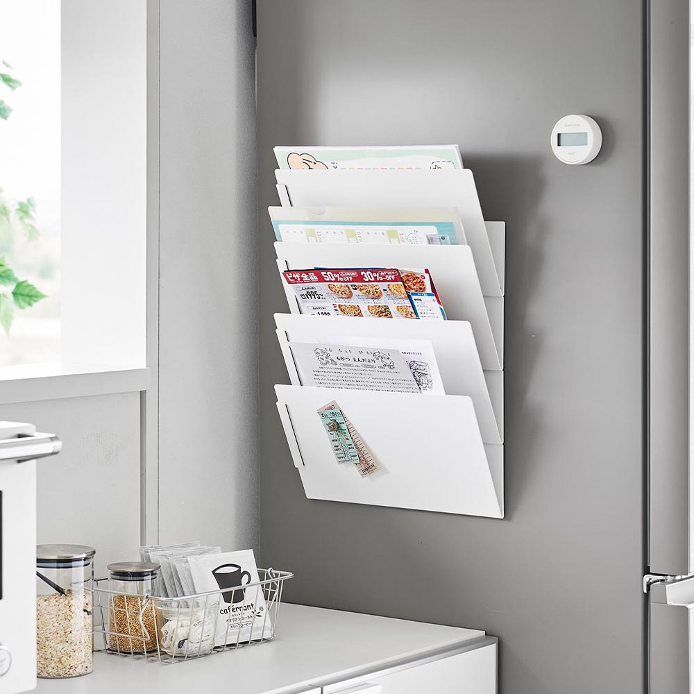マグネットで取り付けるプリント収納ラック。
