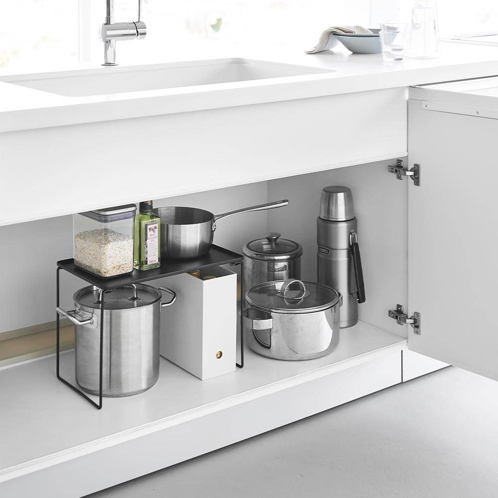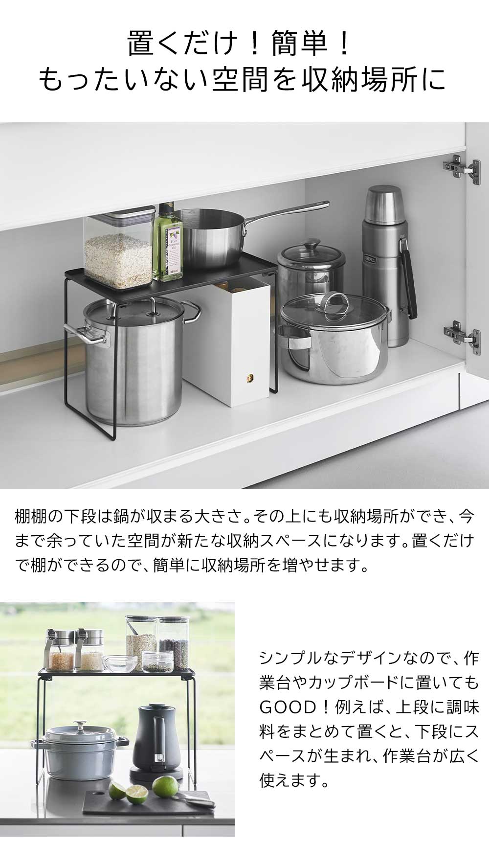 下段に鍋、上段に調味料といったように、空間を上手に活用できます。