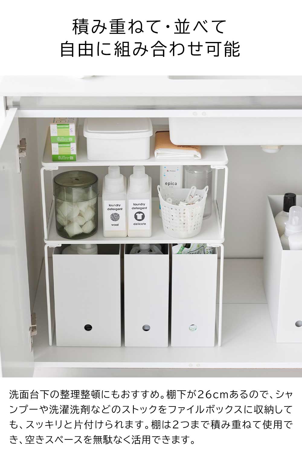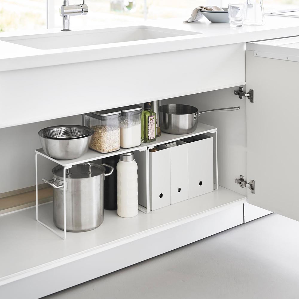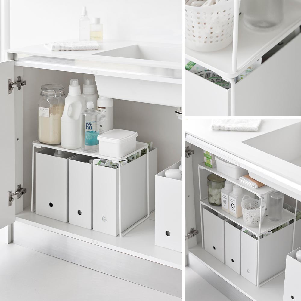 キッチンや洗面所のシンク下の空いているスペースを有効活用できるLサイズの棚。