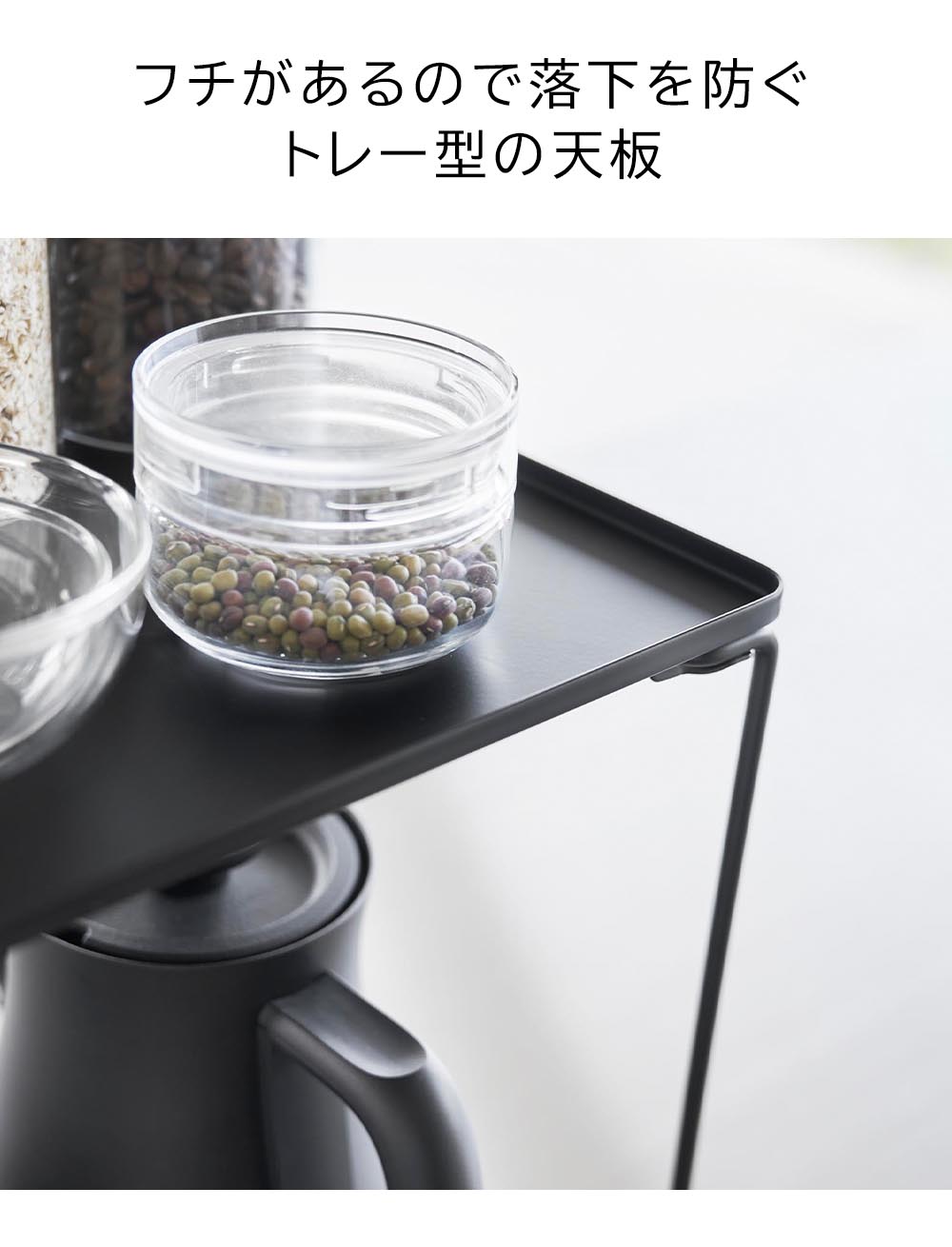 天板部分はトレーのようなフチ付きの形状なので、収納物の落下を防ぎます。