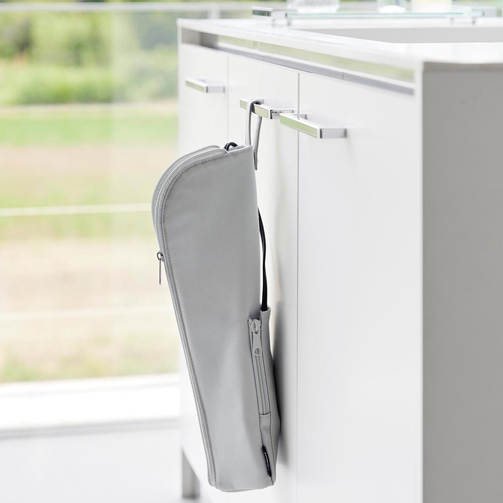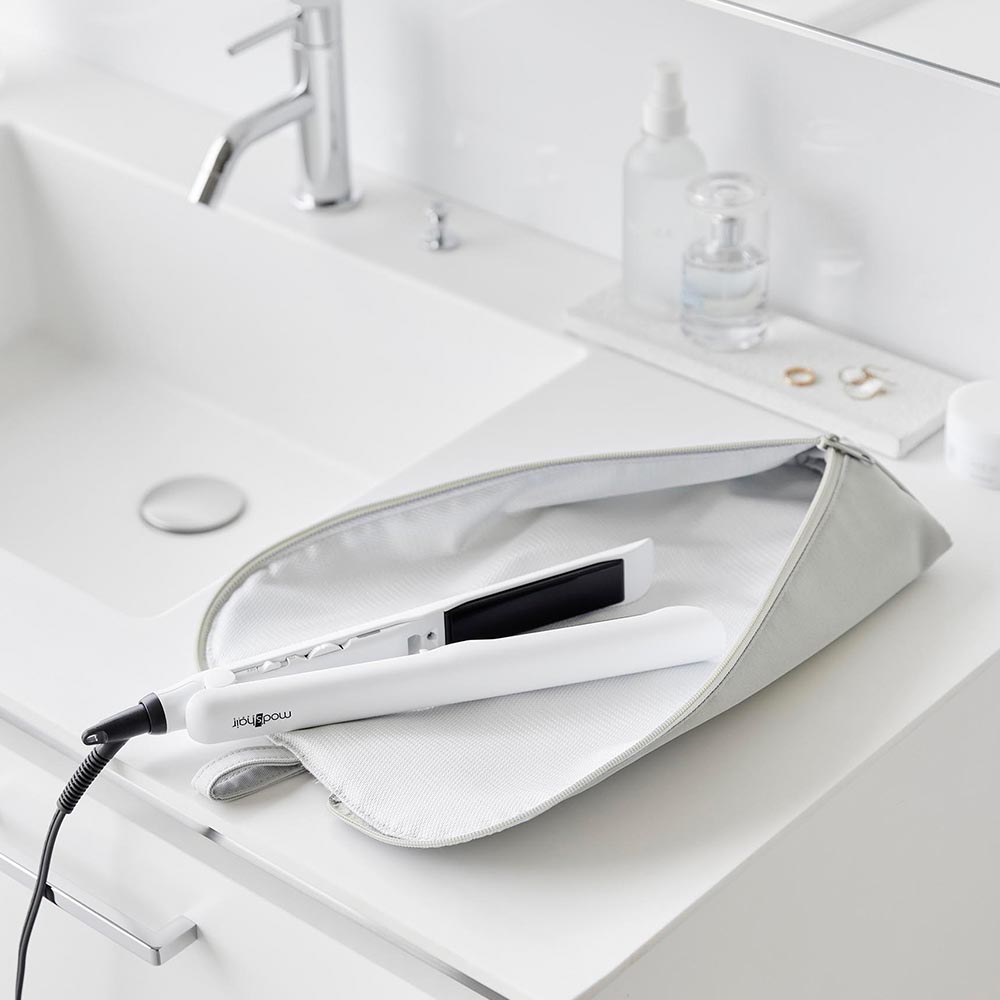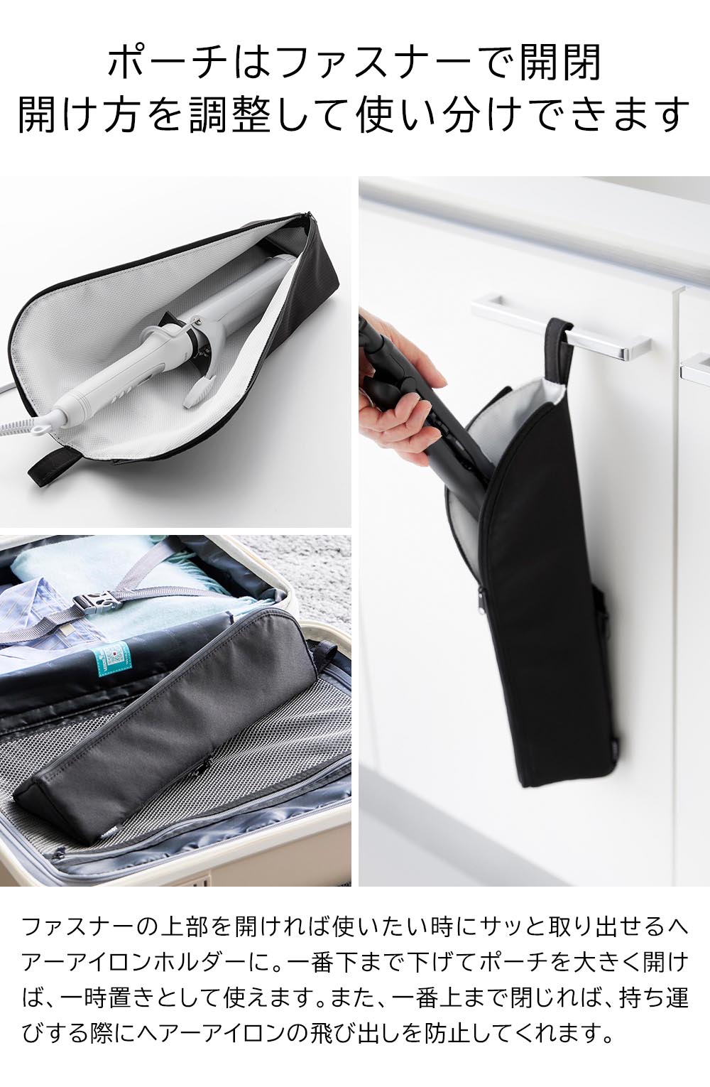 使用後のヘアーアイロンを ストレートアイロン・カールアイロン・ブラシ型アイロンを、熱いまま収納できる耐熱ポーチです。冷めるのを待たずに片付けられるので、忙しい朝にもピッタリ!ポーチに収納することで子どもやペットが誤って触り、火傷してしまう心配もありません。 ポーチはストラップ付き。ストラップをタオルバーやハンドルなどに巻きつけてボタンを留めるだけで吊り下げ収納ができます。浮かせることで狭い洗面まわりでも場所をとらず、出し入れもサッとスムーズにできて便利です。 ポーチはファスナーで開閉。開け方を調整すれば、ヘアーアイロンホルダーや、一時置きとして使えます。旅行などで持ち運びする際には上まで閉めると、ヘアーアイロンの飛び出し防止にもなります。外側のポケットにはゴチャつきがちな電源コードを束ねて収納でき、ファスナーが付いているので電源コードの出し入れもラクにできます。 ![]() ![]() ![]() ![]() ![]() ![]() ![]() ![]() ![]() ![]() ![]() ![]() ![]() ![]() |