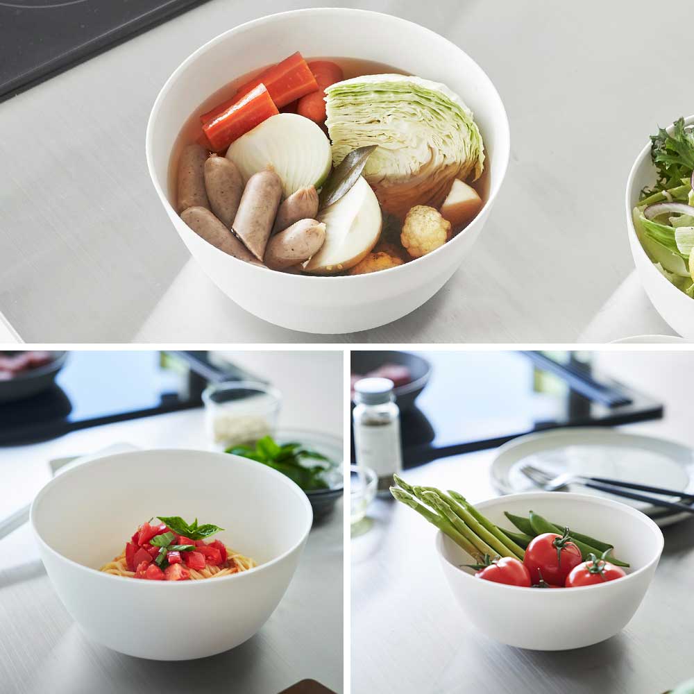 斜めの傾きをキープ! 傾けて軽く手で持つだけで、斜めの状態をラクにキープでき、食材を混ぜやすい調理ボウルS・M・Lの3サイズセットです。安定して混ぜられるので手にかかる負担も軽くなります。ボウルのサイズによって料理ごとに使い分けたり、食材別に分けておくなど、調理中の様々な場面に対応できます。 ボウルは電子レンジで加熱できるので、下ごしらえに便利。冷凍保存も可能です。スッキリとしたシンプルなデザインで、器としても使えます。食卓にそのまま出せるので、洗い物を減らせます。食洗機対応でお手入れも簡単です。 ![]() ![]() ![]() ![]() ![]() ![]() ![]() ![]() ![]() ![]() ![]() ![]() ![]() ![]() ![]() ![]() |