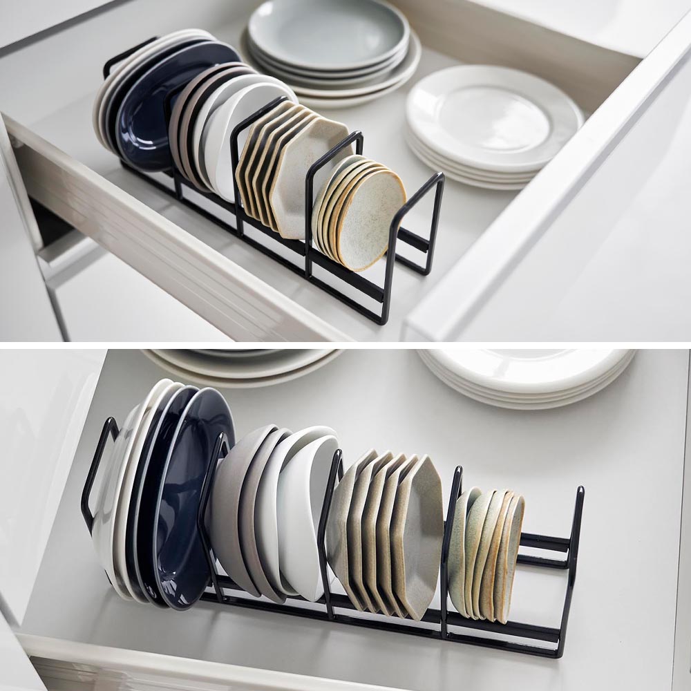 食器棚や引き出しの奥まで使って収納できるディッシュラックです。