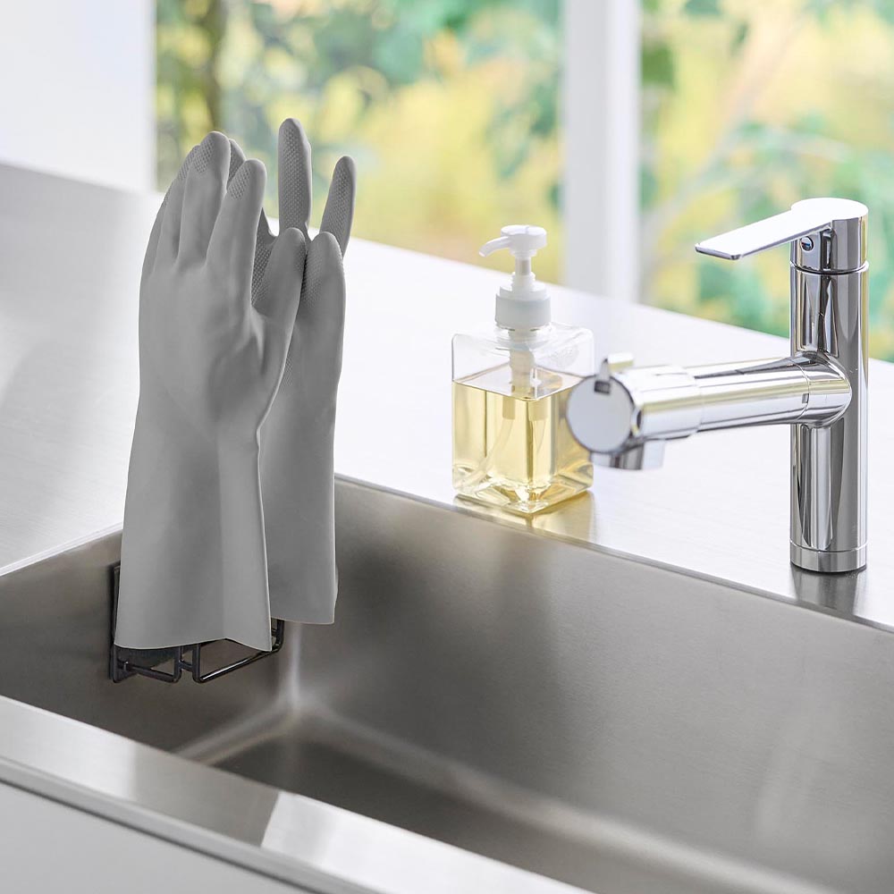 ゴム手袋を乾かしながら収納 キッチンやバスルームで使用するゴム手袋を乾かしながら収納できるホルダーです。 マグネットがつくキッチンパネルやバスルームの壁に貼り付けるだけで、簡単に設置できます。 ホルダーの高さは33cmあり、長さのあるゴム手袋も使ったらそのまま掛けるだけ。保存袋やペットボトルを乾かすのにも最適です。 下部分にはスプレーボトルを引っ掛けられるのでお掃除アイテムがまとまります。付属のフックを使えばブラシや小物も掛けられて便利です。 ![]() ![]() ![]() ![]() ![]() ![]() ![]() ![]() ![]() ![]() ![]() ![]() ![]() ![]() |