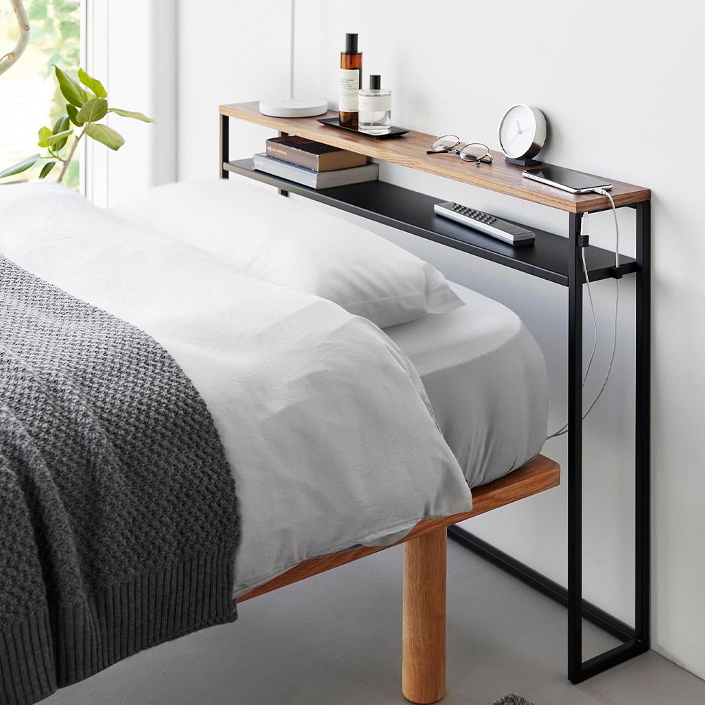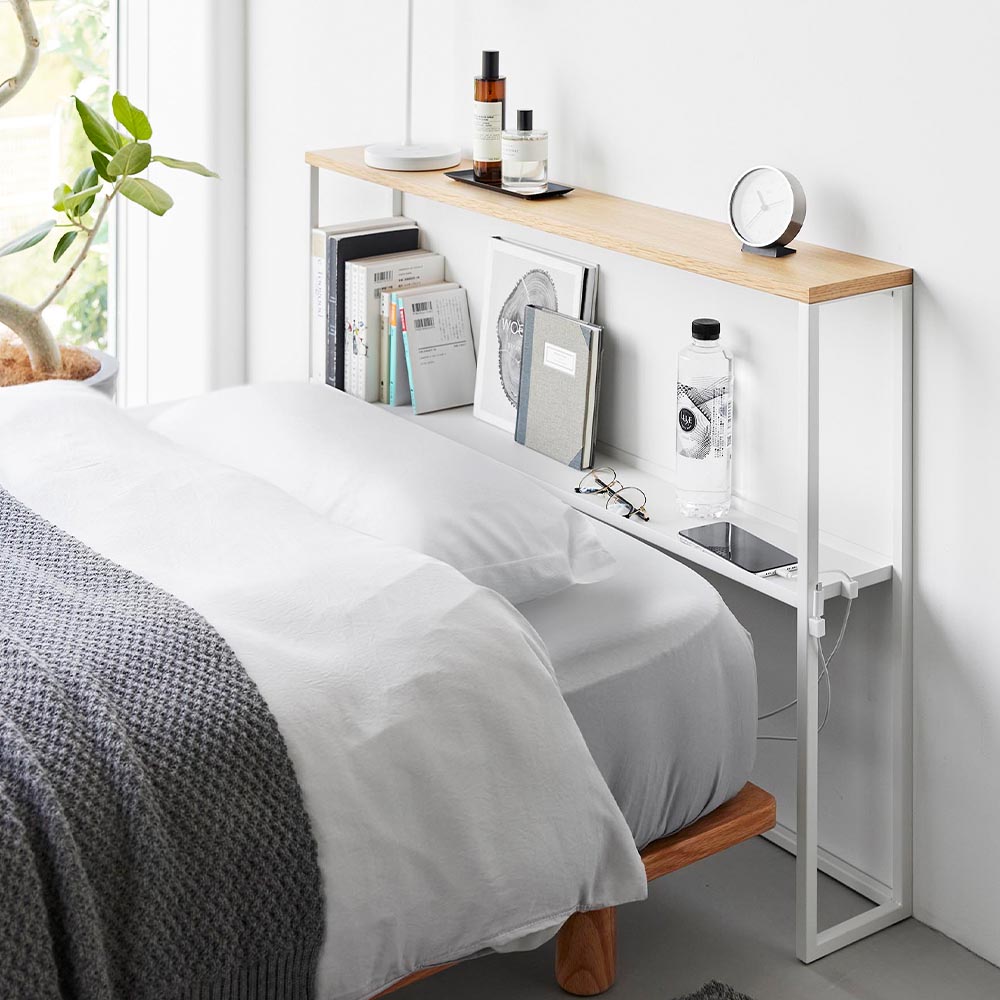 ベッド周りに収納棚を増設! ヘッドレスベッドはとてもコンパクトで部屋を広く使えますが、就寝時に収納場所がないのが悩みの種。そんな時にはこちらの商品を置くだけで、ベッド周りに簡単に収納棚を増設できます。 シングルベッドに丁度良い幅100cmの後付けヘッドボードで、ベッドの高さに合わせて、棚板の高さを3段階変更できます。 棚板は、表と裏を返すことで「フチあり」と「フチなし」を選べます。 マグネットが内蔵されたケーブルホルダーが2個付属しているので、スマートフォンなどの充電ケーブルをヘッドボードのお好みの位置に貼り付けて収納しておくことができます。 天然木の天板が目をひくスタイリッシュな外観なので、リビングなどでの使用もオススメです。 奥行15cmのスリムな設計で場所を取らず、インテリア小物や観葉植物を置く飾り棚にするのも素敵です。 ![]() ![]() ![]() ![]() ![]() ![]() ![]() ![]() ![]() ![]() ![]() ![]() ![]() ![]() |