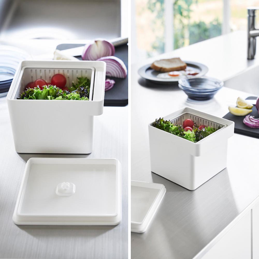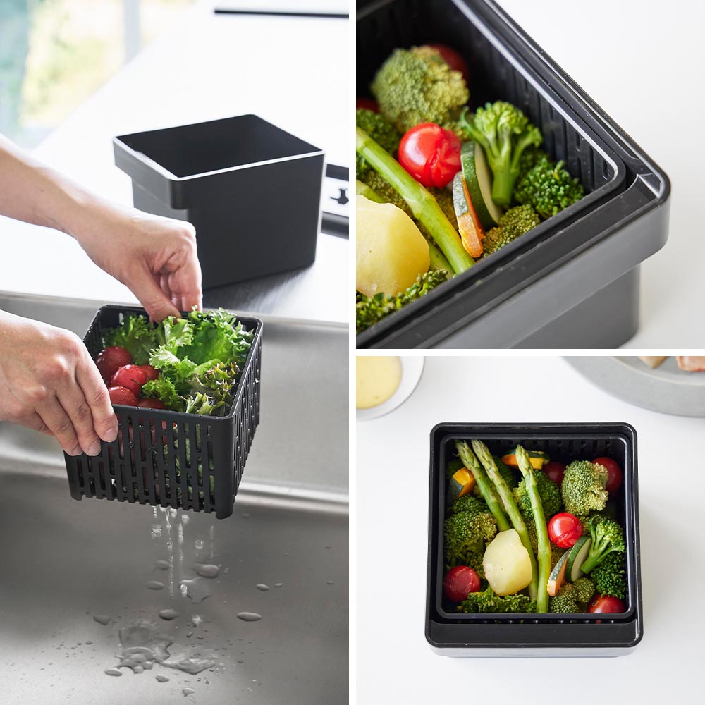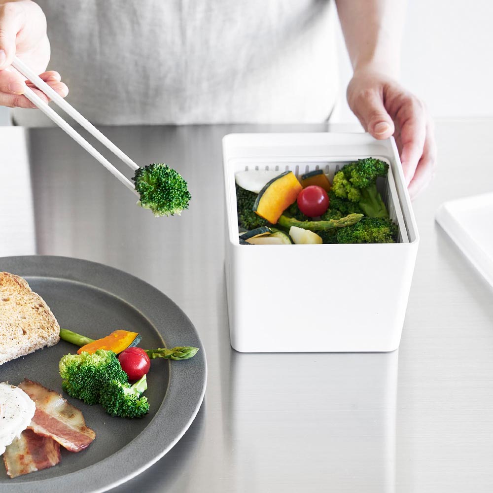 野菜を美味しく密閉保存 電子レンジ調理、食洗機でのお手入れ、冷凍保存に対応した保存容器です。 ザル付きだから、洗った野菜の水を切りながら冷蔵保存、といった使い方も可能です。余分な水分はザルの下に落ちるので食材の鮮度を保て、蓋のバルブとパッキンでしっかり密閉できるから水漏れやにおい移りを防げます。 また、電子レンジで蒸し料理や下ごしらえにもおすすめ。ザルがあることで蒸気が全体に行き渡りやすく、短時間で美味しく蒸しあがります。 ハンドル付きで出し入れもラクラク。食事の盛り付けやお弁当作りの際にも便利です。 容量は、本体1.5Lザル1.3L。四角い形状で冷蔵庫にも綺麗に収まり、複数使いでもすっきり整頓できます。 パーツは全て分解して洗うことができるので、清潔に保てます。 ![]() ![]() ![]() ![]() ![]() ![]() ![]() ![]() ![]() ![]() ![]() ![]() ![]() ![]() ![]() ![]() |