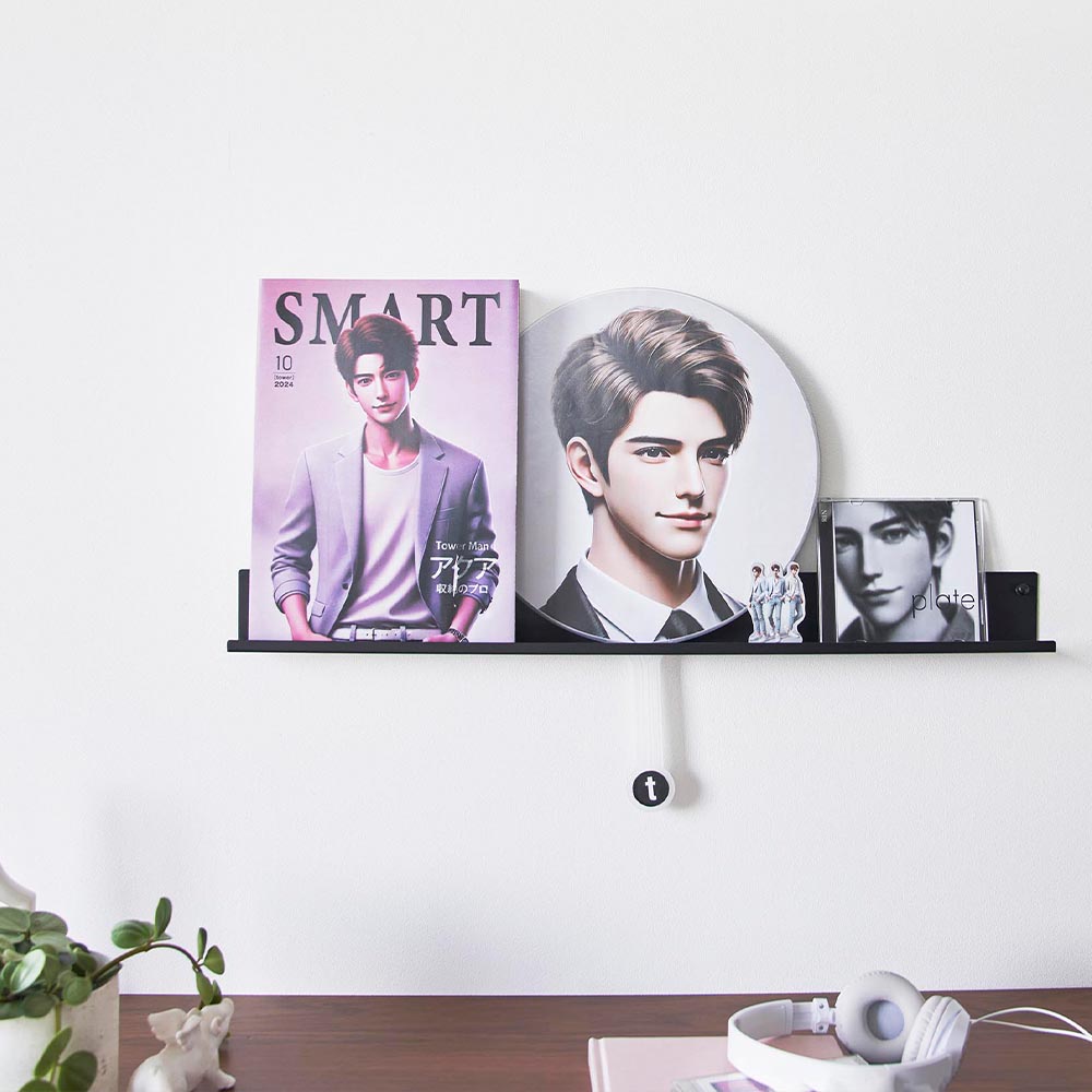 ライブうちわや記念グッズ、限定ジャケットのCDなど、増えていくお気に入りの推し活グッズを飾りながら壁面収納できるスリムなウォールラックです。