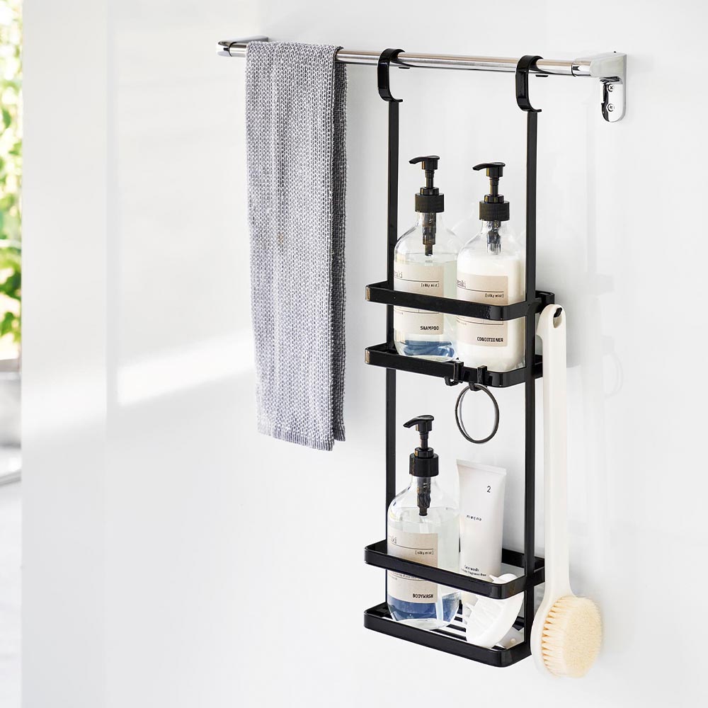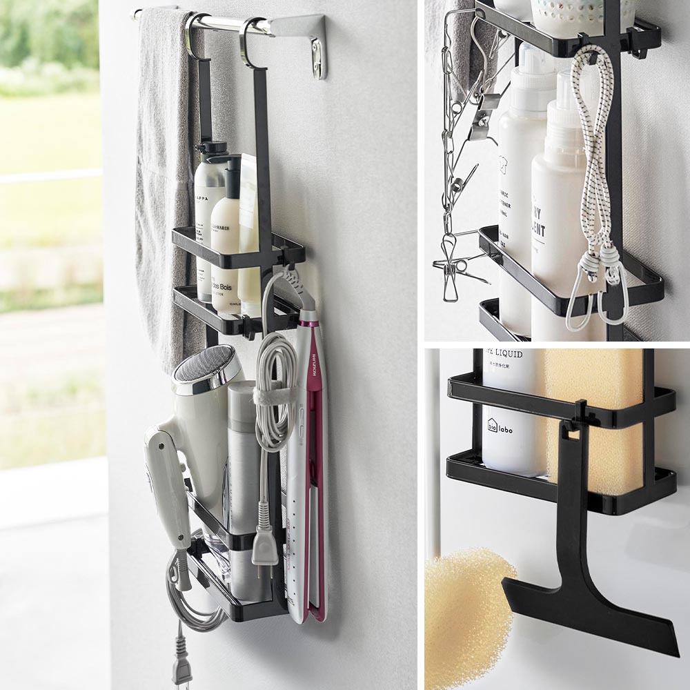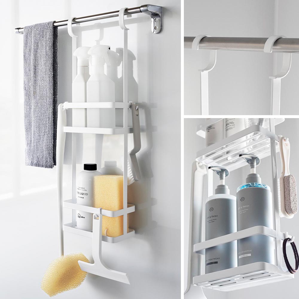バス用品をまとめて収納! 浴室のランドリーパイプやタオルバーなどに引っ掛けて設置する、バス用品を一括収納できる2段のディスペンサースタンドです。 ディスペンサーや美容グッズ、掃除用品など、様々なアイテムを2段に分けて収納可能!本体フレームにはタオルなども掛けられます。また、フックが4個付属しており、本体のお好みの場所に取り付ければ、ボディブラシやヘアゴム、水切りワイパーなどを引っ掛けて収納できます。 浮かせているので水切れや風通しが良く、乾きやすくて衛生的。お掃除の際にも邪魔になりません。 浴室以外にも、洗面所のタオルバーに設置して、ドライヤーやヘアケア用品、洗濯用品などの収納場所にするのも大変便利です。 ![]() ![]() ![]() ![]() ![]() ![]() ![]() ![]() ![]() ![]() ![]() ![]() |