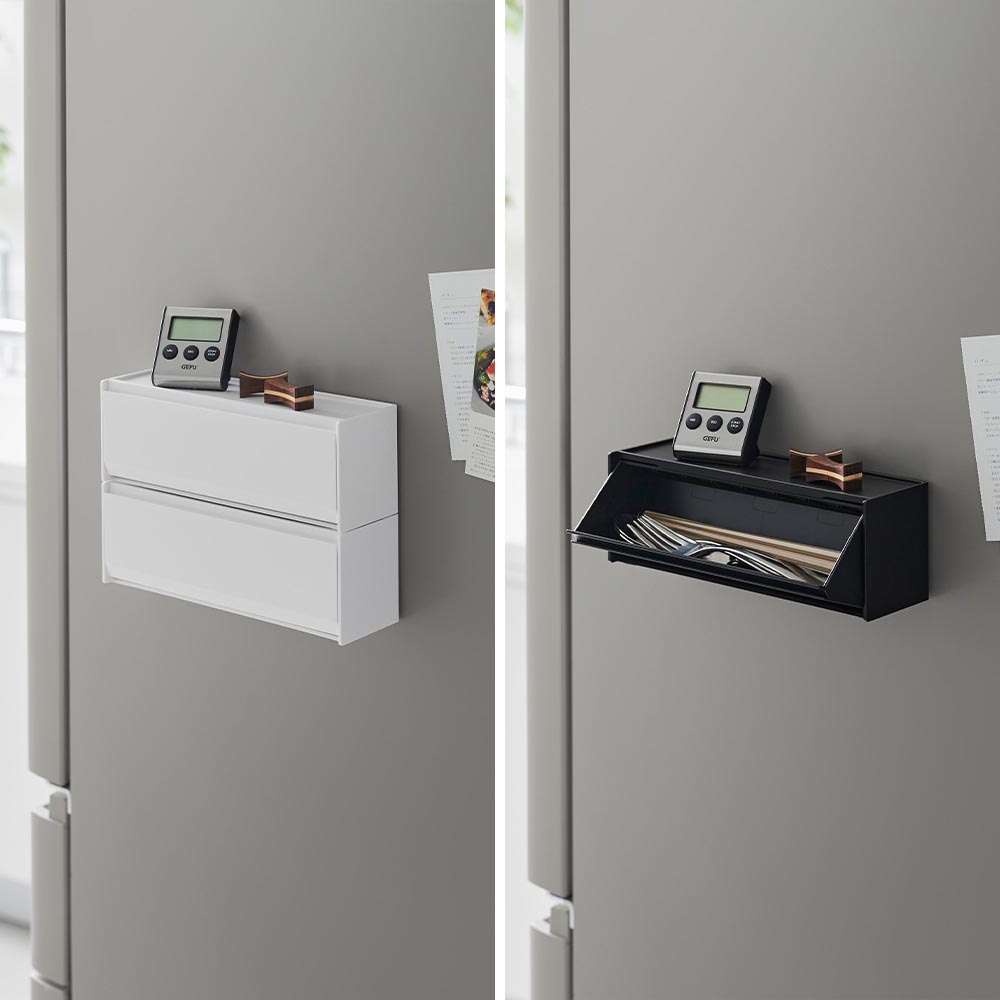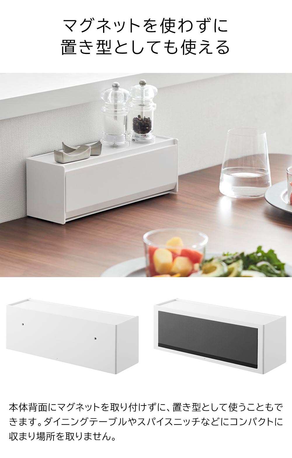 キッチンパネルや冷蔵庫横などにマグネットで取り付けたり、ダイニングテーブルやスパイスニッチなどに直置きするなど、場所を取らずスマートに設置できます。