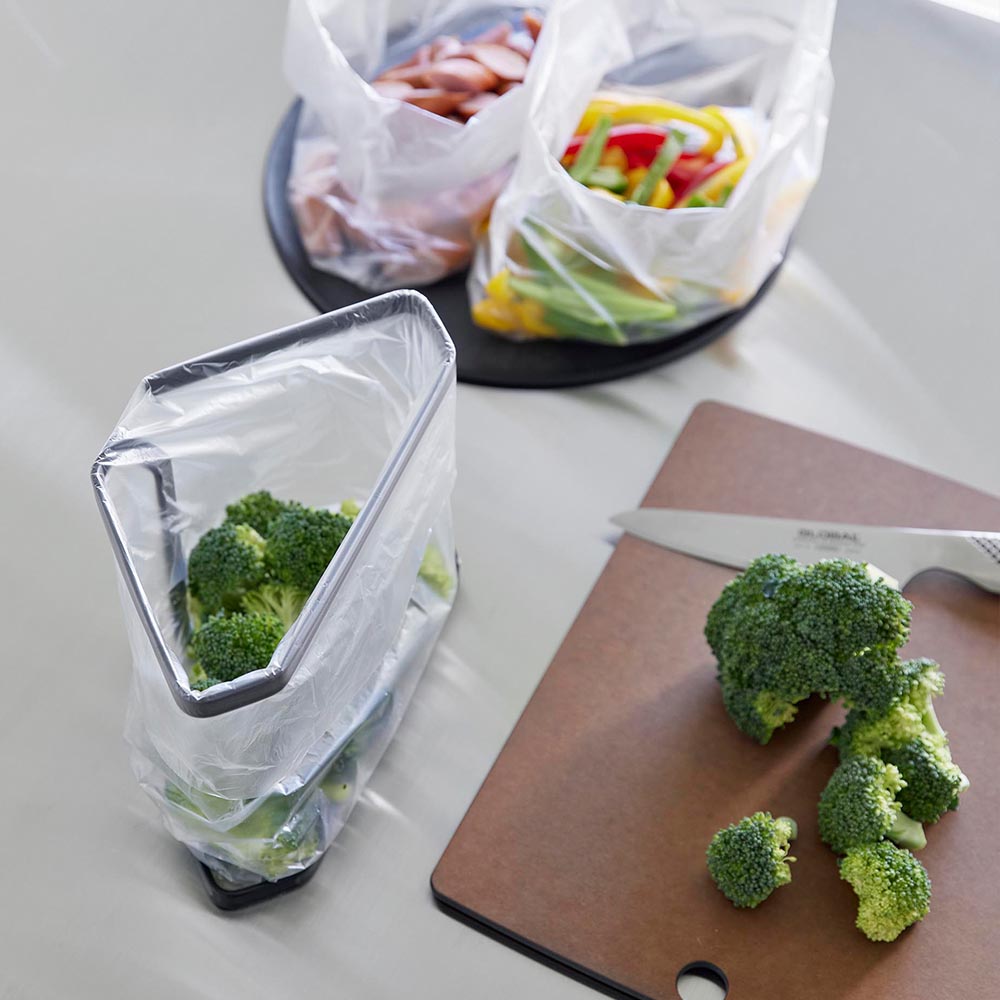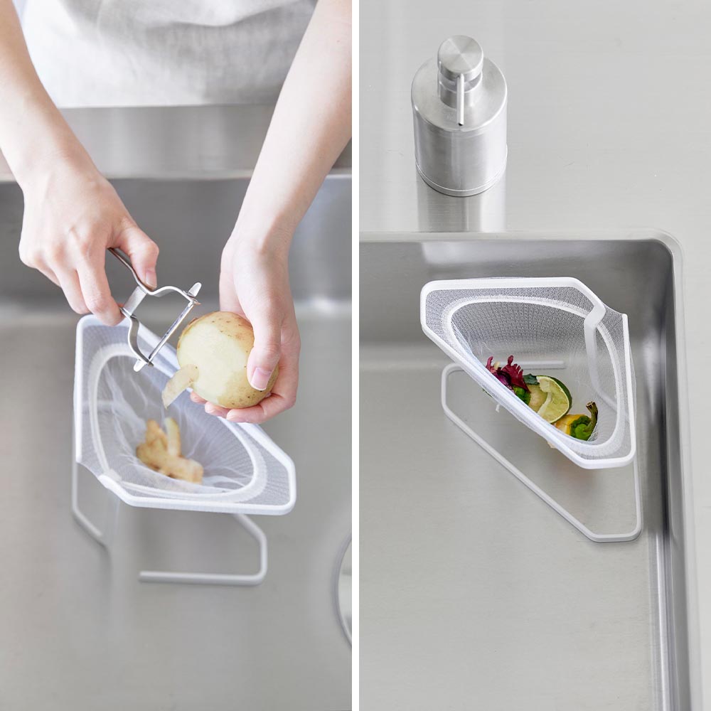 水切りネットを掛けるだけ 水切りネットを引っ掛けるだけで簡単にセットできるステンレス製の三角コーナーです。 圧迫感のないフレームのみのシンプルなデザインで、毎日のお手入れも簡単にできます。 フレームの下部に付属のクッションを取りつけて使えば、シンクとの間に隙間ができ、水分がスムーズに流れます。フレームとシンクが直接触れないのでキズ防止にもなります。 三角コーナーとしてではなく、ポリ袋をセットして調理台のゴミ捨てに使ったり、保存袋やフリーザーバッグをセットして食材を移し替えたりといった使い方も便利です。 ![]() ![]() ![]() ![]() ![]() ![]() ![]() ![]() ![]() ![]() ![]() ![]() ![]() ![]() ![]() |