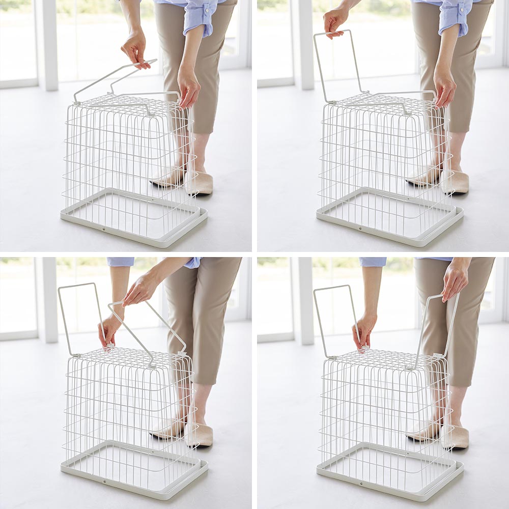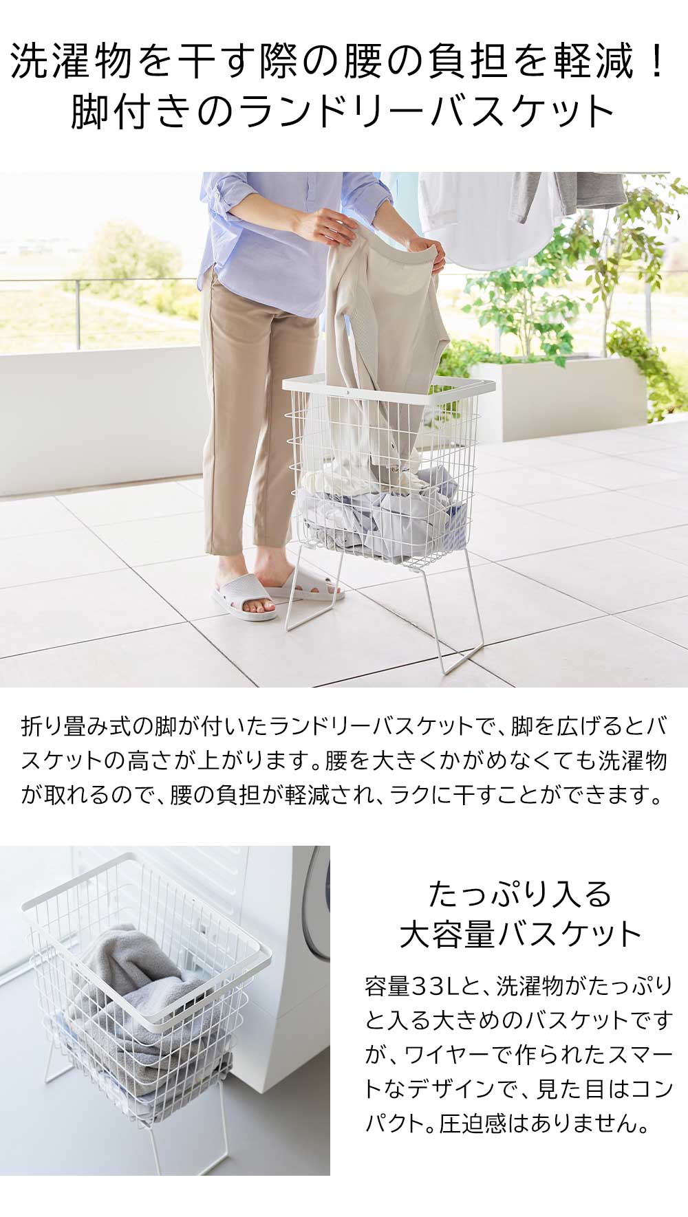 腰を曲げずラクに干せる! 洗濯物を干す際に、腰をかがめてバスケットの中から1枚1枚取り出すのは、とても身体に負担がかかるものです。 こちらの商品は、折り畳み式の脚が付いたランドリーバスケットで、脚を広げるとバスケットの高さが上がります。腰を大きくかがめなくても洗濯物が取り出せるので、腰の負担が軽減され、ラクに干せます。 ドラム式洗濯機の横に置いて使う時などは、脚を畳んでおくと洗濯物を出し入れしやすい高さになります。 バスケットにはハンドルが付いているので、持ち運びもラクラク!ハンドルを畳むとバスケットの開口部と水平になるようにスッキリと格納されます。 33Lと大容量ながら、シンプルなデザインのワイヤーバスケットなので、圧迫感はなく、スタイリッシュに空間に馴染みます。 ![]() ![]() ![]() ![]() ![]() ![]() ![]() ![]() ![]() ![]() ![]() ![]() ![]() |