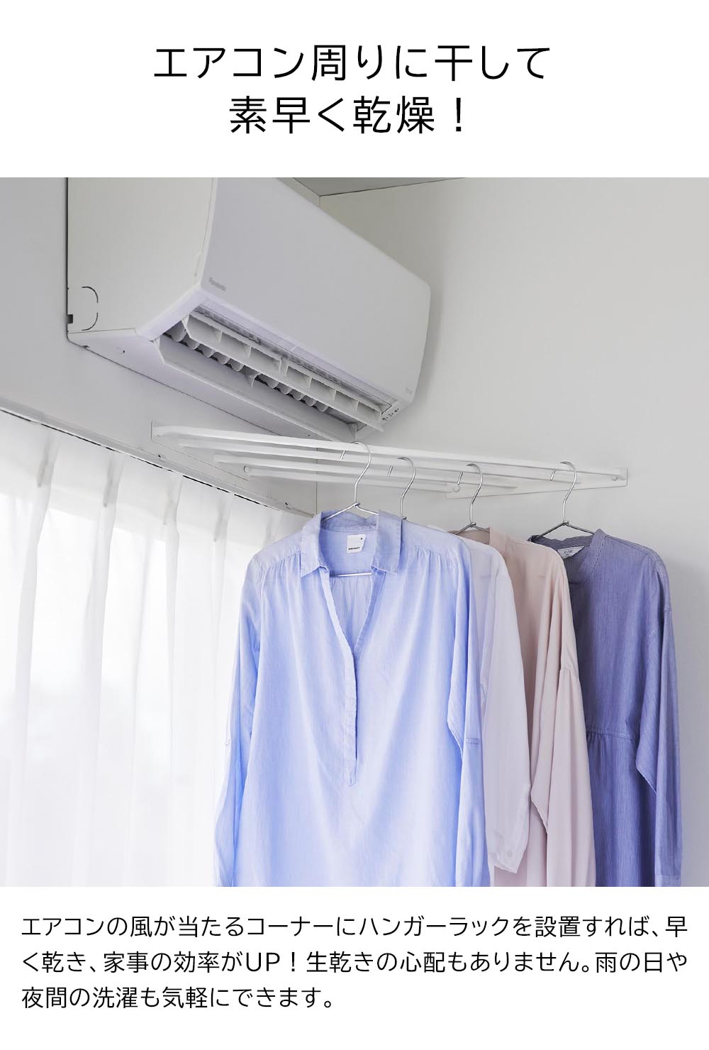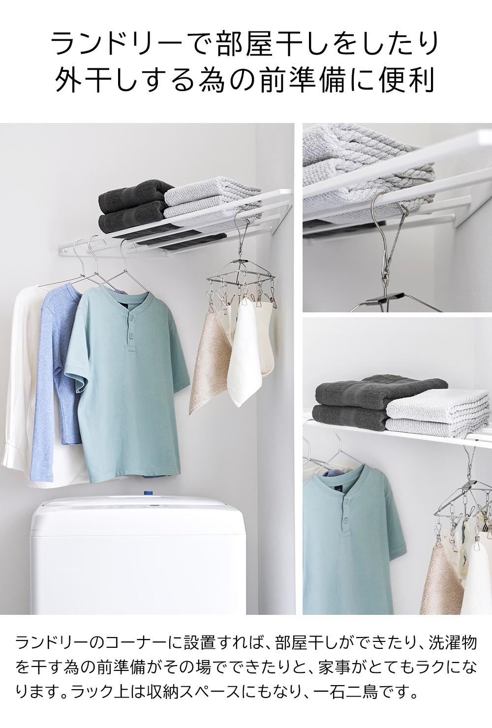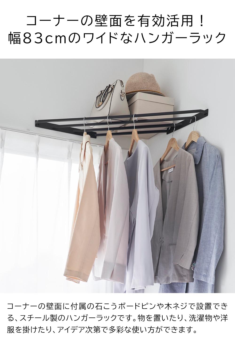 コーナーの壁面を有効活用! 部屋のコーナーの壁面に付属の石こうボードピンや木ネジで設置できる、スチール製のハンガーラックです。長押の上に本体を引っ掛けて設置することも可能です。 ラックの上に物を収納できるのはもちろん、洗濯物を干したり、コートハンガーのように使ったりと、アイデア次第で様々な使い方ができます。 エアコンまわりなどの風通しの良い場所に設置して、部屋干し用のバーとして使用すると、乾きが早くなり大変便利です。 トイレや洗面所など、狭いけど収納したい物が多い場所にも、デッドスペースを有効活用して手軽に収納場所が増やせます。 ![]() ![]() ![]() ![]() ![]() ![]() ![]() ![]() ![]() ![]() ![]() ![]() ![]() |