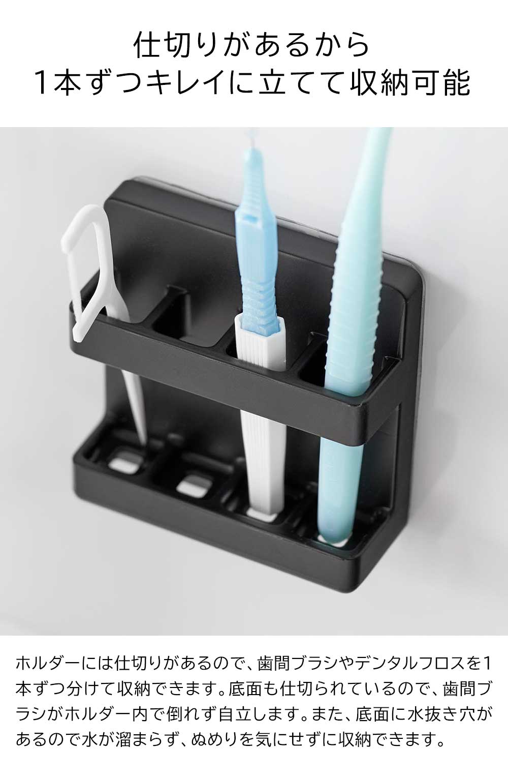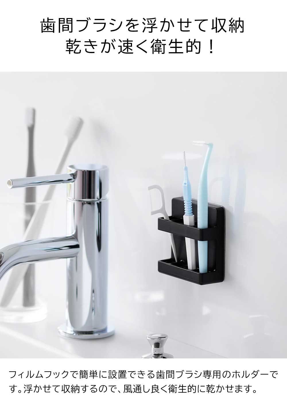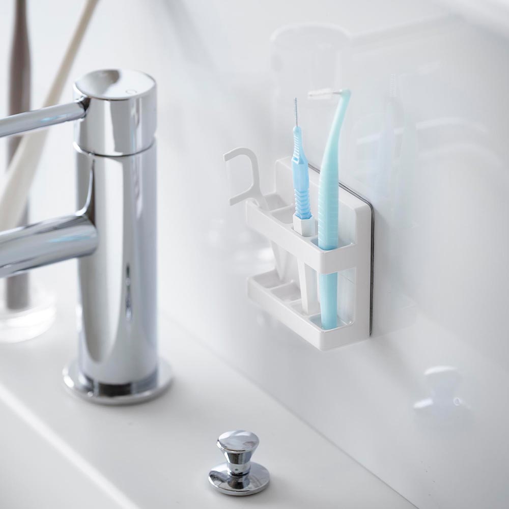 歯間ブラシを1本ずつ お好みの場所に貼ったフィルムフックに掛けて、簡単に設置できる歯間ブラシ専用のホルダーです。 浮かせて収納するので、風通し良く衛生的に乾かせます。 底面に水抜き穴があるので水が溜まらず、ぬめりを気にせずに収納できます。 ホルダーには仕切りがあるので、歯間ブラシやデンタルフロスを1本ずつ分けて収納できます。 底面も仕切られているので、歯間ブラシがホルダー内で倒れず自立します。 ![]() ![]() ![]() ![]() ![]() ![]() ![]() ![]() ![]() ![]() ![]() |