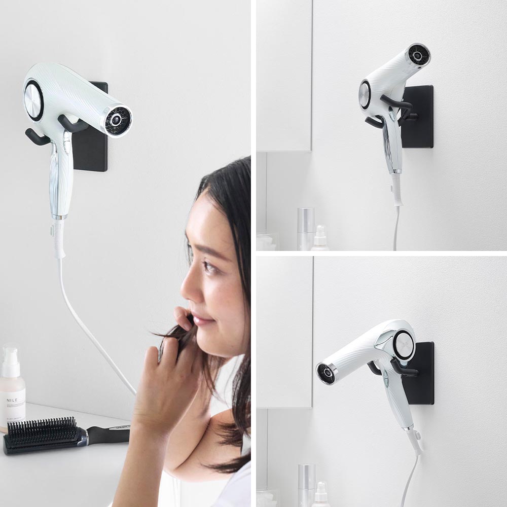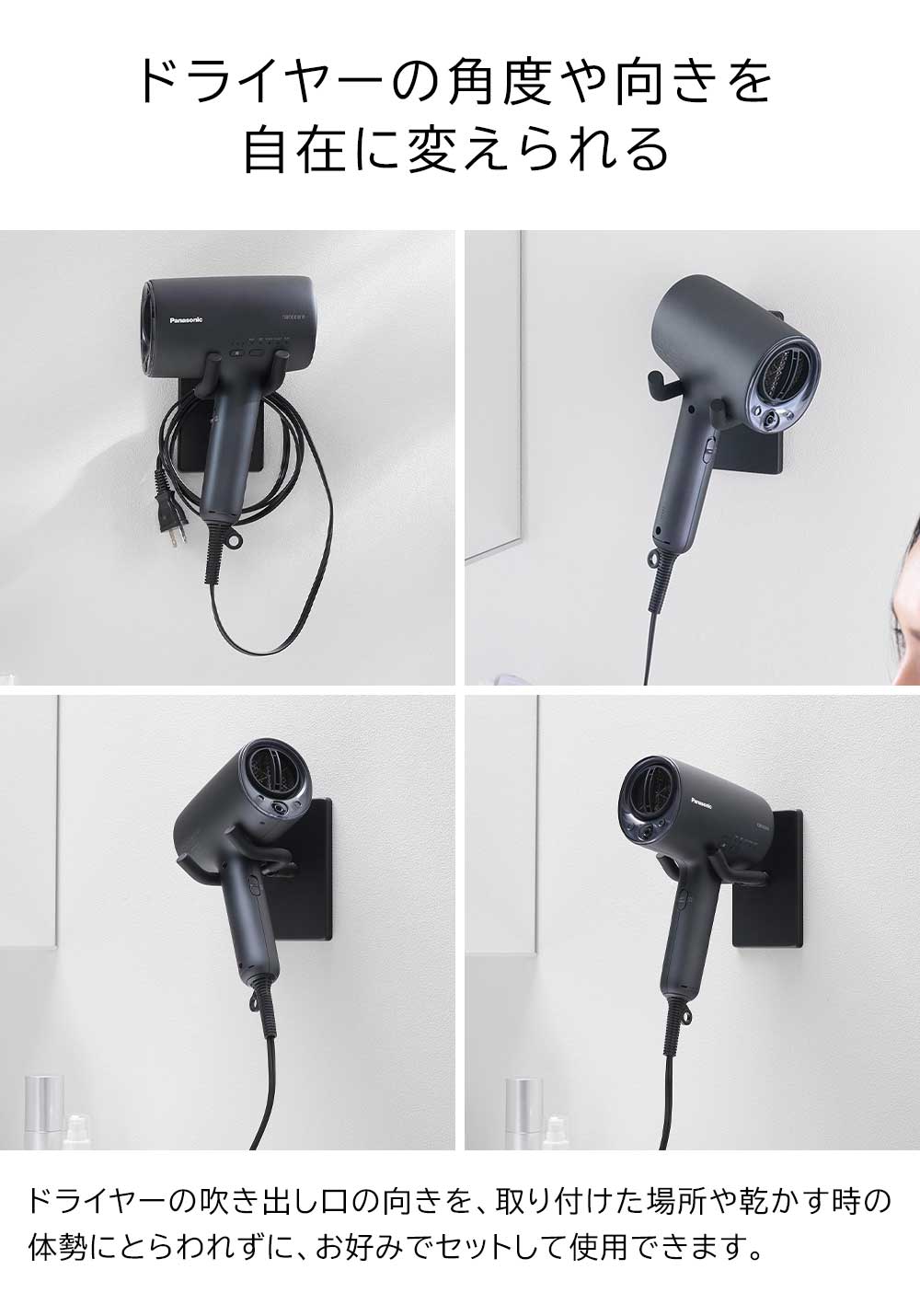 ドライヤーのヘッドに合わせてホルダーの角度を調節できるので、様々な形状のドライヤーを安定して収納できます。