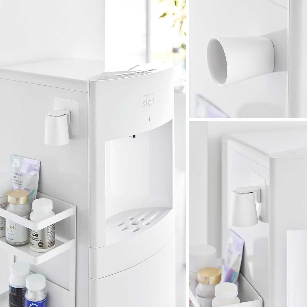 ワンタッチで付け外し! フィルムフックで洗面パネルやタイルなどに簡単に取り付けられる、マウスウォッシュ用にちょうど良い小さいサイズのタンブラー。 タンブラーの底にはマグネットが埋め込まれており、ホルダーのスチール部分へワンタッチでタンブラーを付け外しできます。 コップの飲み口を逆さまにして浮かせて収納できるので、水切れや風通しが良く清潔に乾かせます。 ホルダーへの収納以外にも、マグネットがつく場所に、タンブラーを直接収納することも可能です。 ウォーターサーバー横に取り付ければ薬やサプリを飲む際にも便利です。 ![]() ![]() ![]() ![]() ![]() ![]() ![]() ![]() ![]() ![]() ![]() |