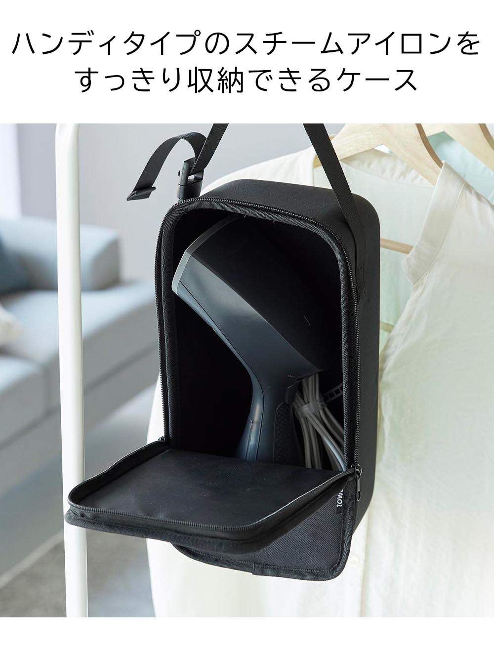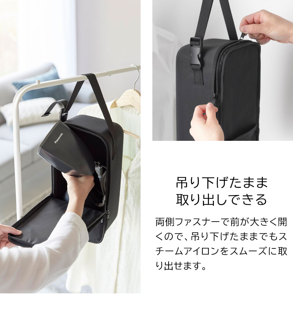 スチームアイロンを 収納しづらいハンディタイプのスチームアイロンを、すっきり収められるケースです。 ワンタッチで着脱できるベルトで、クローゼットのハンガーバーやコートハンガーなどに吊り下げられます。前が大きく開き、吊り下げたままでも、スチームアイロンをスムーズに取り出せます。 衝撃を和らげるセミハードケースで、型崩れもしないため、収納棚に置いてもすっきりと収まります。 正面には小物が入るポケットが付いて便利です。 ![]() ![]() ![]() ![]() ![]() ![]() ![]() ![]() ![]() ![]() ![]() ![]() |