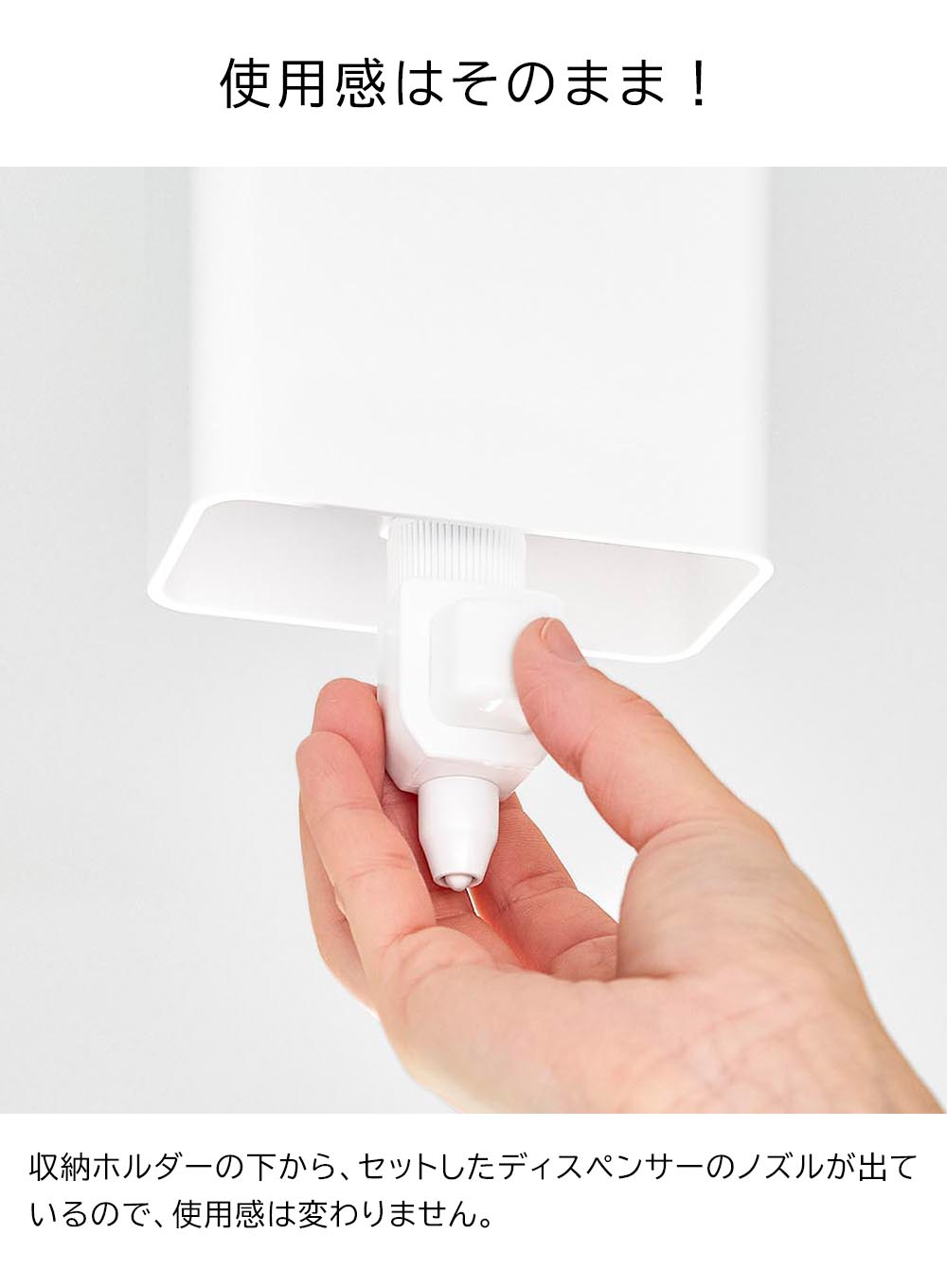 収納ホルダーの下からディスペンサーのノズルが出るので、使用感は変わりません。