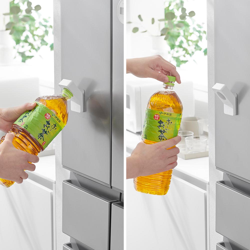 フィルムフックで簡単設置 固くて開けにくいペットボトルのキャップを少しの力で開けられるキャップオープナーです。ペットボトルのキャップ部分をオープナーに差し込んで回すだけで簡単に開けられます。フィルムフックを冷蔵庫に貼り付けて、本体を掛けるだけで設置完了。一人ではキャップを開けるのが難しいお子さまや高齢者、ネイルをされている方でもラクに開けられて便利です。 ![]() ![]() ![]() ![]() ![]() ![]() ![]() ![]() ![]() ![]() ![]() ![]() ![]() |