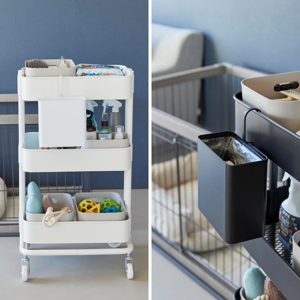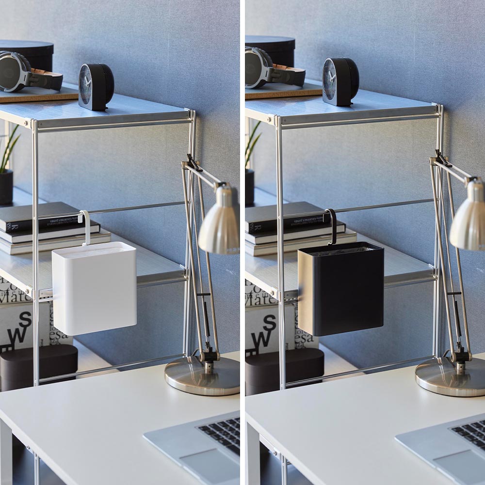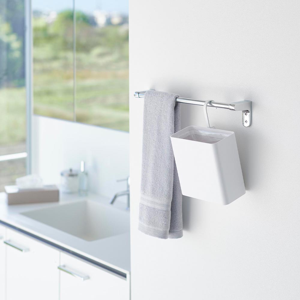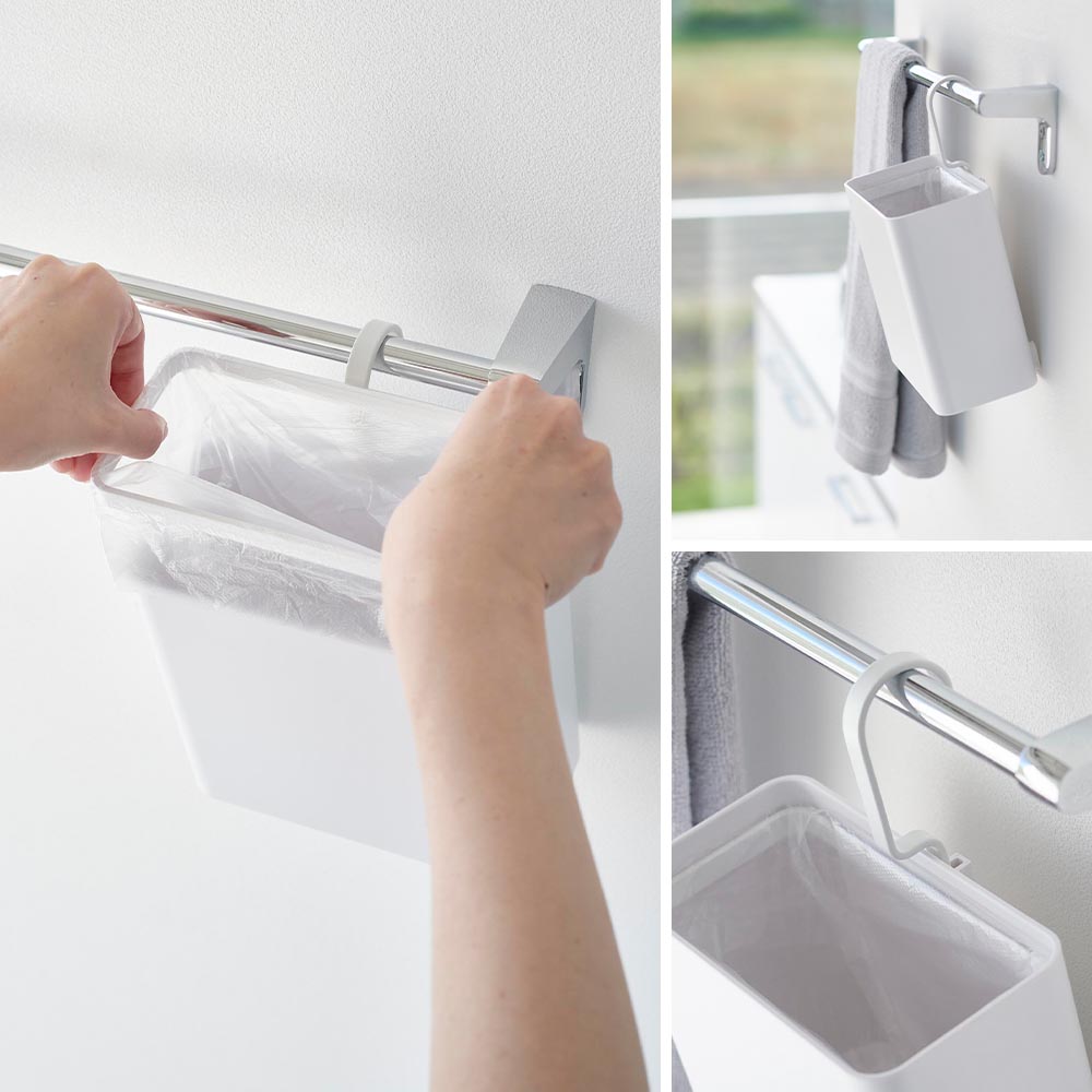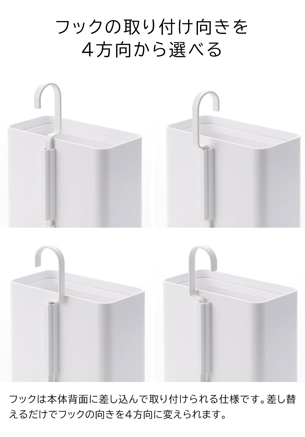 フックで引っ掛けて設置する 洗面所やデスク、ペットケージ横など、引っ掛けるところがあれば何処にでも、吊り下げて設置できるフック付きのゴミ箱です。 フックの取り付け向きは4方向に変えられ、タオルバーやワゴンなど、取り付けたい場所に合わせて引っ掛ける向きを選べます。 内側には袋止めリングがあり、ポリ袋をズレずにセットできます。ポリ袋の折り返し部分を内側に隠してスッキリと掛けられ、ゴミ捨て時には、本体を吊るしたままでも取り外しができて便利です。 ![]() ![]() ![]() ![]() ![]() ![]() ![]() ![]() ![]() ![]() ![]() ![]() |