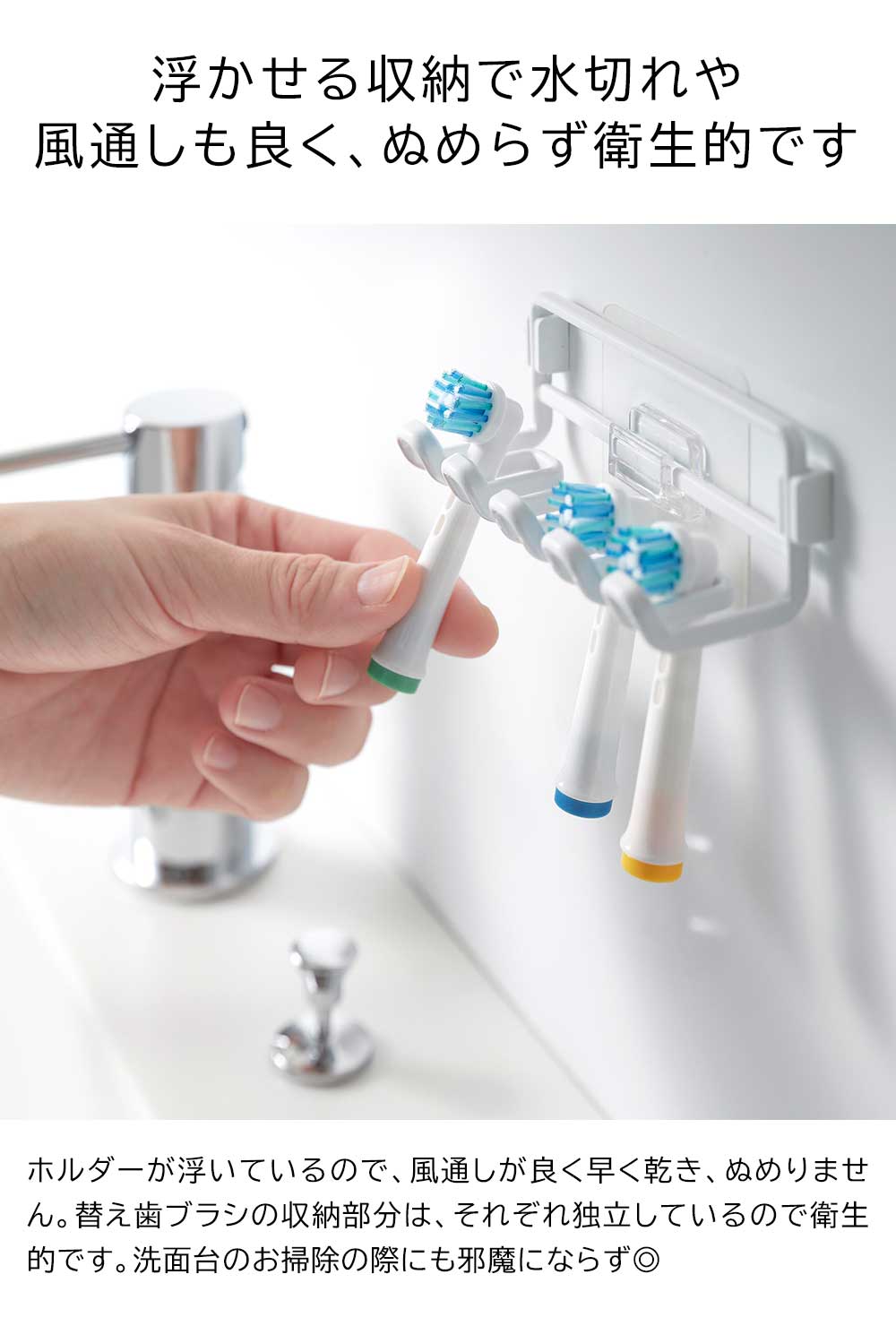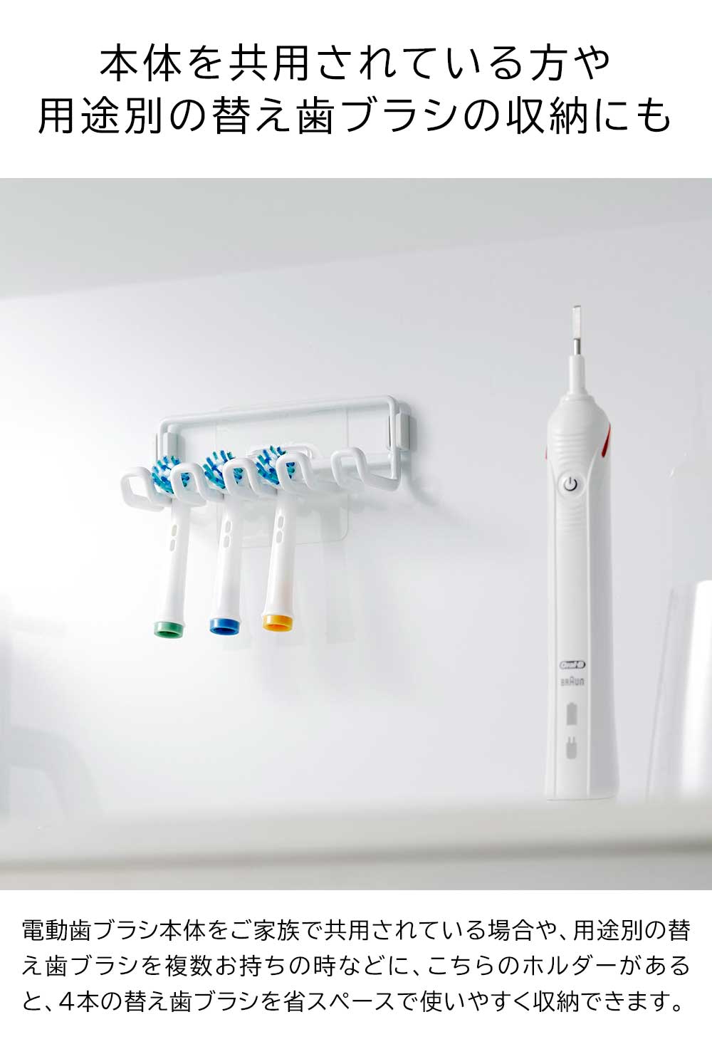 フィルムフックで簡単設置! 電動歯ブラシの替え歯ブラシを浮かせて収納できる専用ホルダーです。 フィルムフックを洗面台パネルやタイル壁のお好みの場所に貼り、ホルダー本体を引っ掛けるだけで簡単に設置できます。 様々な形状の替え歯ブラシを使い分けて磨かれている方や、1本の電動歯ブラシ本体をご家族で共用されている時などに、こちらのホルダーがあると、4本の替え歯ブラシを省スペースで使いやすく収納することができます。 浮かせているので水切れや風通しも良く衛生的です。 替え歯ブラシの収納以外にも、ヘアゴムや洗面小物を引っ掛けて収納するのも便利です。 ![]() ![]() ![]() ![]() ![]() ![]() ![]() ![]() ![]() ![]() ![]() ![]() ![]() |