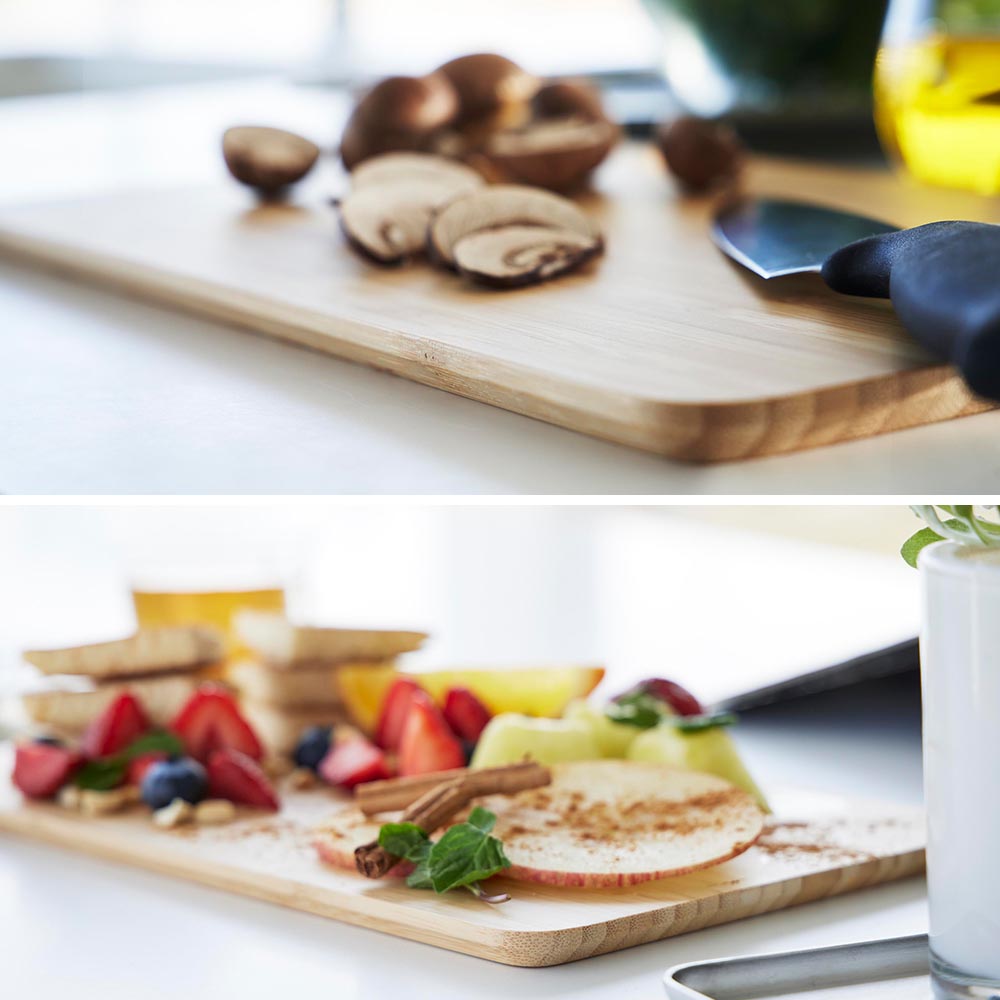 刃当たりのやわらかい竹製 シンプルな長方形、質感がオシャレな竹製のまな板。幅約31.5cmと少し小さめのサイズは、少量の食材をちょこっとカットしたり、調理スペースを広く取れないキッチンにもピッタリ。竹製は刃当たりもやわらかく、包丁を傷めにくいのも嬉しいポイントです。裏面には刻印があり、表面と食材を区別してカットできて便利。まな板としてだけでなくテーブルにそのまま出して、サービングボードとして食卓をオシャレに演出しても◎ ![]() ![]() ![]() ![]() ![]() ![]() ![]() ![]() ![]() ![]() ![]() |