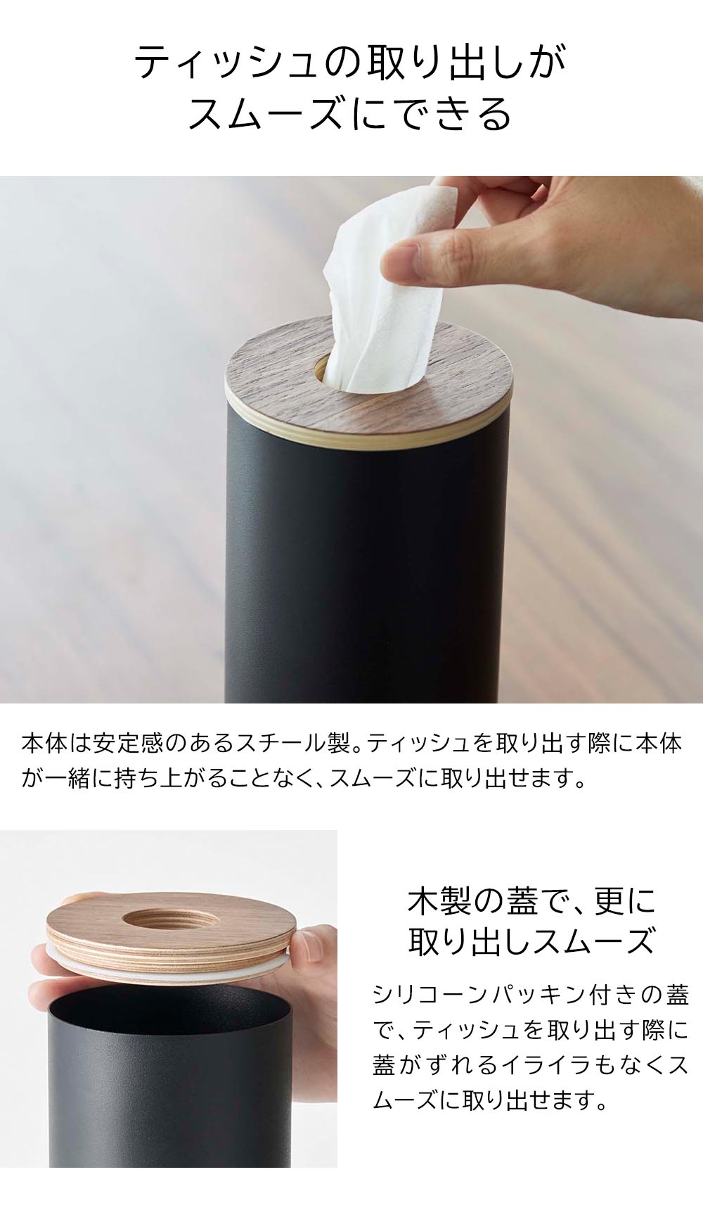 省スペースで場所をとらない ボックスタイプのティッシュケースでは置けなかった狭いスペースも有効に活用できる、ボトル型のティッシュケースが便利!安定感のあるスチール製で、サッとスムーズにティッシュの取り出しができます。木製の蓋は、シリコーンパッキン付き。しっかり蓋ができるので、ティッシュを取り出す時に蓋がずれたりするイライラもありません。詰め替えも簡単!市販のティッシュを筒状に少し丸めて本体にいれるだけでOK。色々なシーンに思わず置きたくなってしまうスタイリッシュなデザインも魅力。置くだけで生活感を一掃し、オシャレな空間に変えてくれます。 ![]() ![]() ![]() ![]() ![]() ![]() ![]() ![]() ![]() ![]() ![]() ![]() |