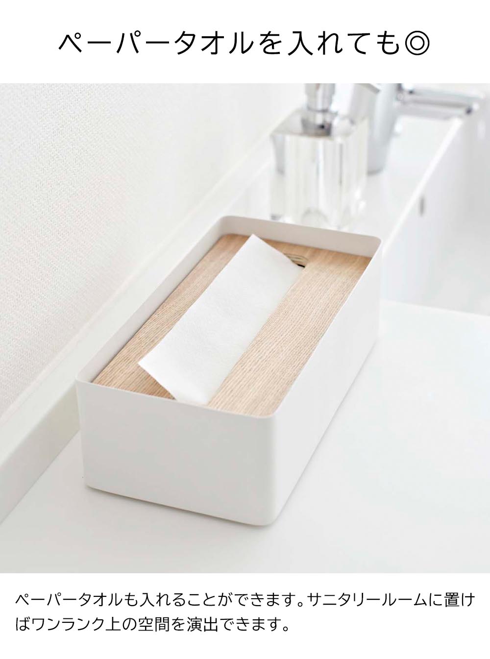 対応ティッシュ:一般的なサイズのティッシュ・ペーパータオル、高さ約7cmまでの一般的なティッシュボックス