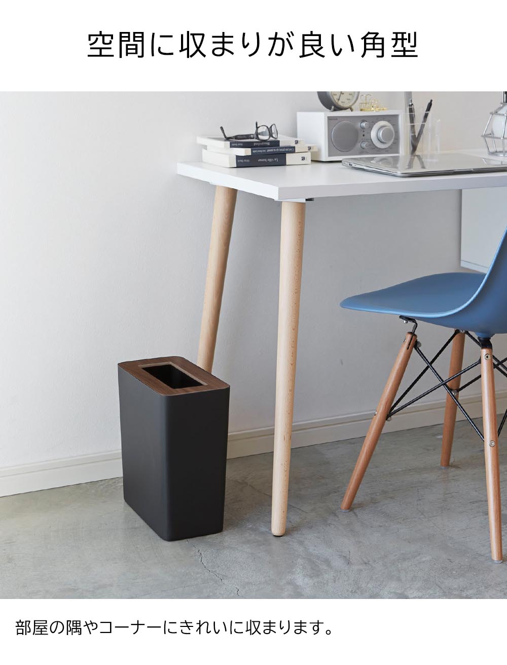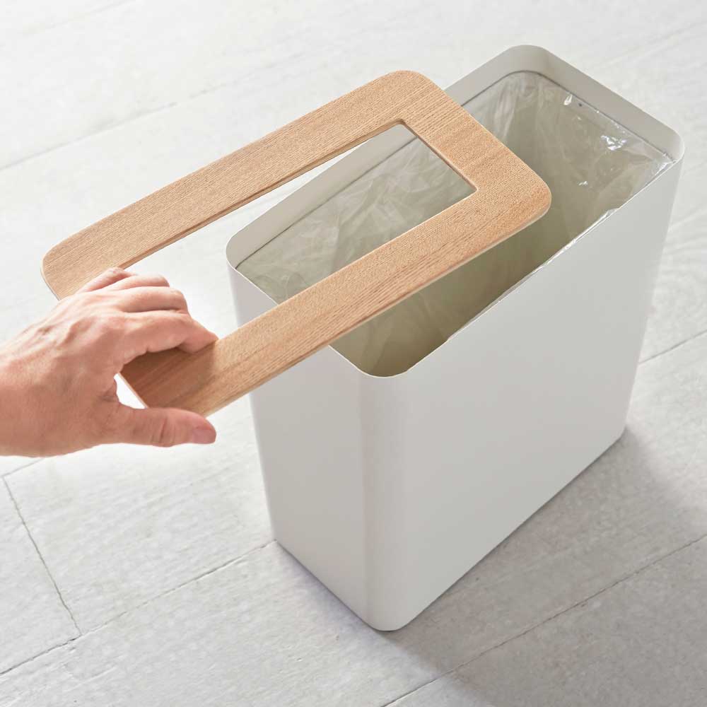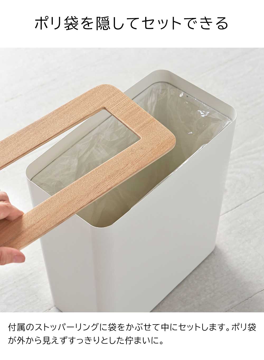 ポリ袋を隠してセットできる インテリア性の高い おしゃれな角型のゴミ箱