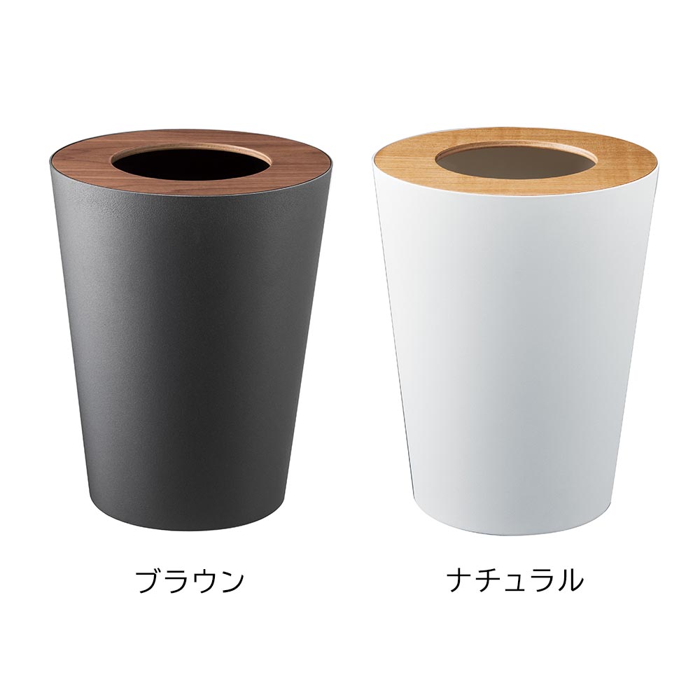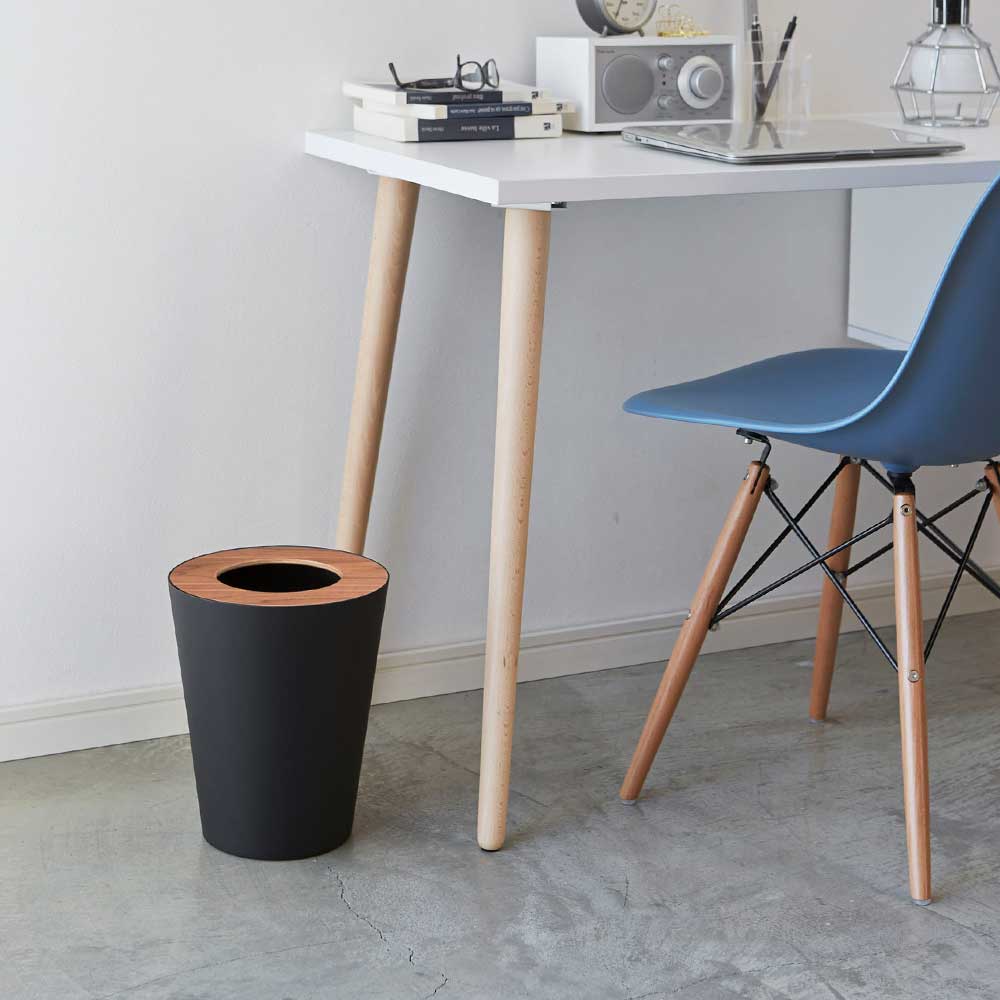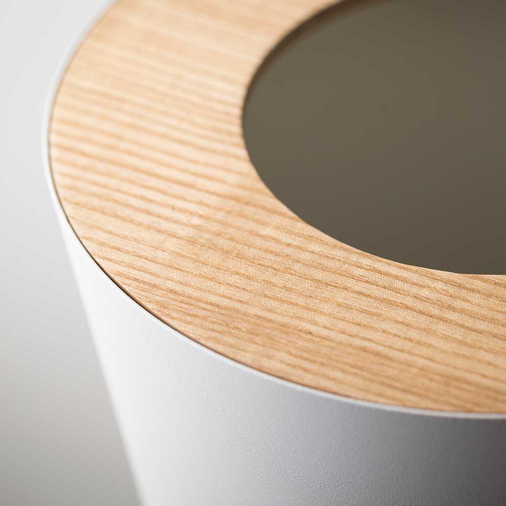 重厚感のあるスチールと木目が美しい天然木の組み合わせが洗練された印象のゴミ箱です。ポリ袋は外から見えないようにセットでき生活感を感じさせません。真ん中に投入口のある蓋はゴミを隠しつつゴミ捨ての際に開ける必要がなく便利です。丸型のシンプルなフォルムはやさしい雰囲気で、様々なインテリアに馴染みます。