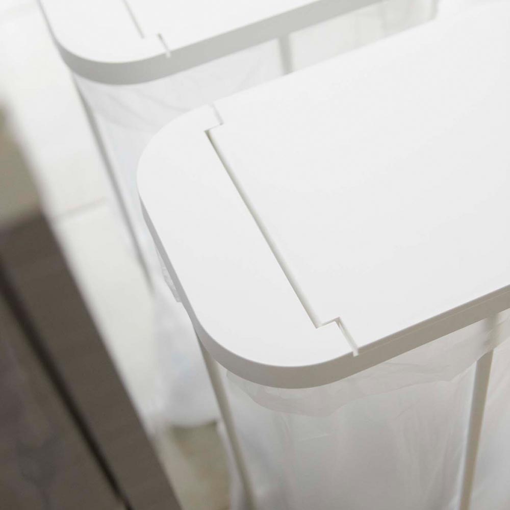 袋を掛けて蓋をするだけで、ゴミ袋がそのままゴミ箱として使えます。本体は蓋とフレームだけのシンプルな構造なので、汚れが付く箇所が少なくお手入れが簡単。スリムな形状なので複数個並べても邪魔になりにくく、ペットボトルや空き缶などの分別用のゴミ箱としてもオススメです。袋の取り換えは、袋を持ち上げずサッと下から手前に引き抜くだけで簡単です。