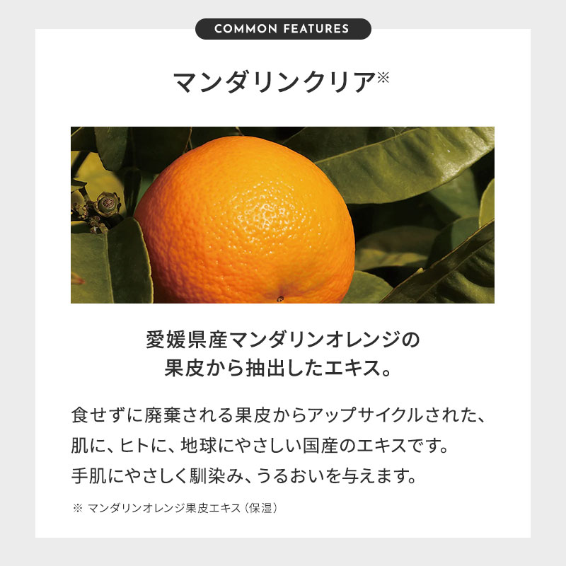 ・マンダリンクリア ※1:愛媛県産マンダリンオレンジの果皮から抽出したエキス。