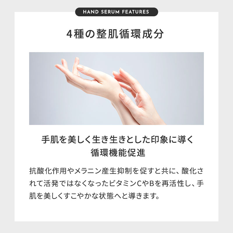 手肌を美しく、いきいきとした印象に導くための整肌サポート成分を配合。